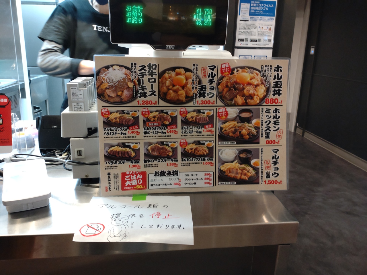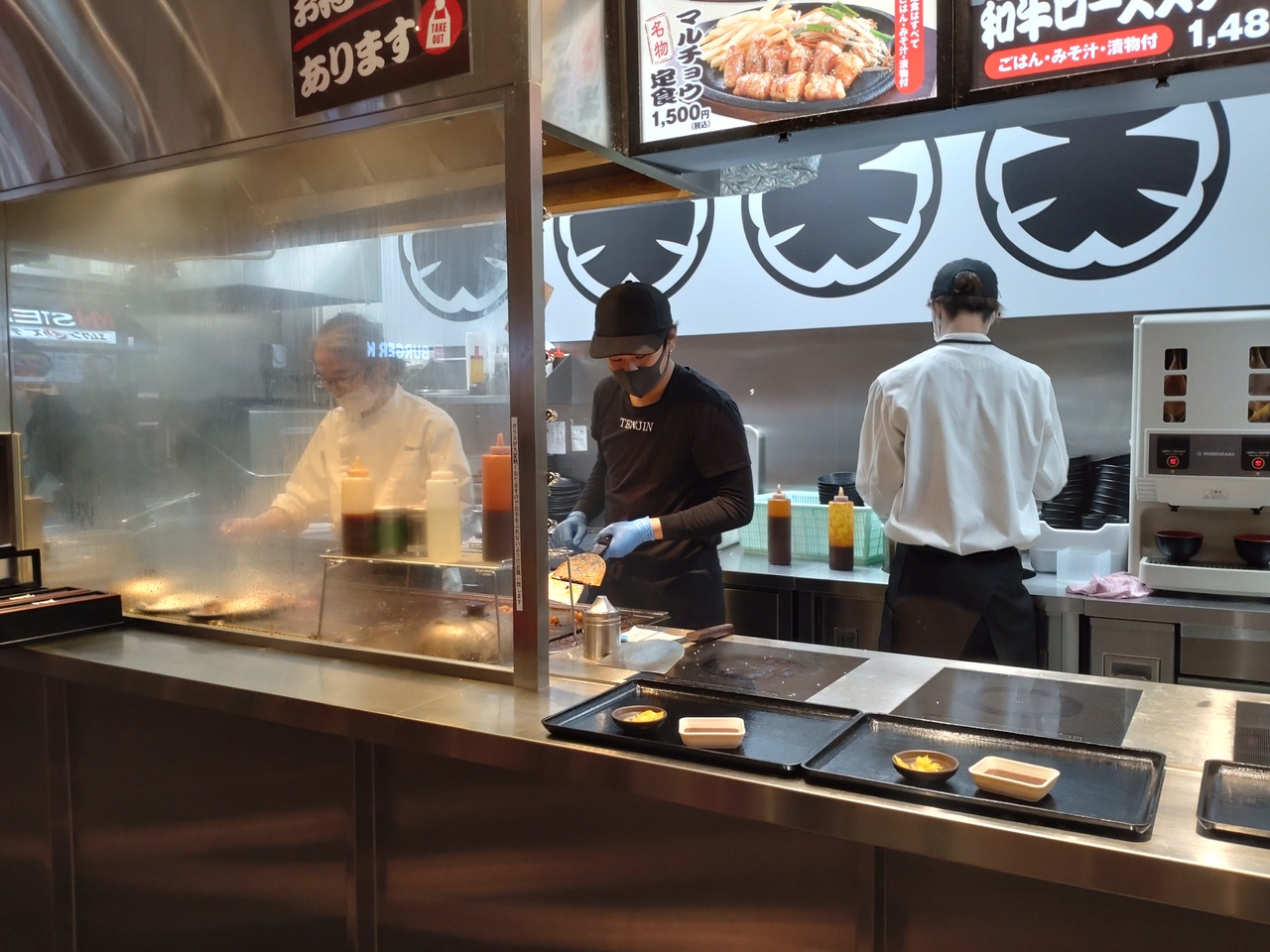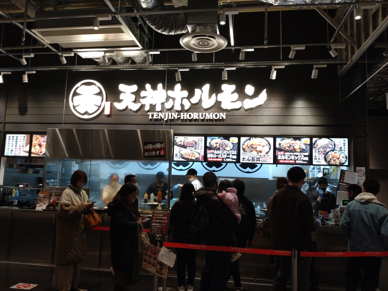 セブンパーク天美の3階のフードコートにあるホルモン焼きのお店。福岡で創業した人気店のFC店のようで、関西にはヨドバシ梅田やホワイティ梅田、神戸umeieモザイクにもありますが、こちらはフードコートのお店(Webサイトによると初のフードコート店らしい)。このため、目の前の鉄板で焼くカウンター席ではないので、出来上がると、鉄板の上で器を温めて提供。