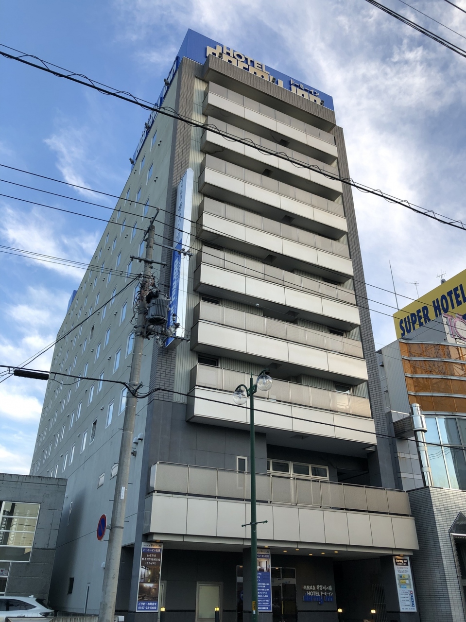 JR北見駅から徒歩5分くらい、北4条西2丁目にあるビジネスホテル。駅からは北へ信号3つ、4条通りの中央通りと銀座通りのほぼ間にあり、北見市の歓楽街である北5条通りも近く、ホテル近くにはコンビニもあり便利。ちなみに隣はスーパーホテル。