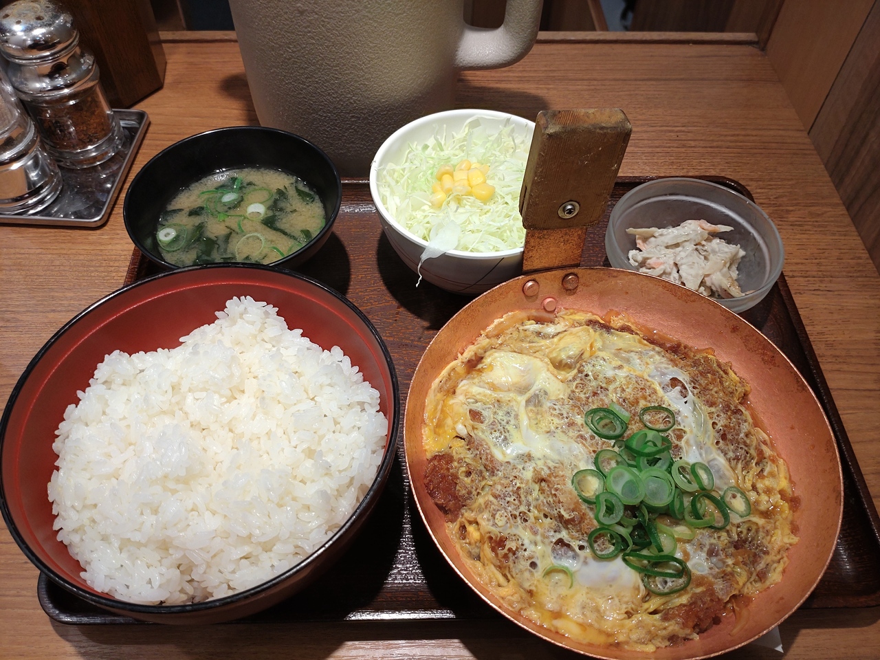 色々迷うものの、結局はノーマルな卵とじのかつ丼をオーダー。少し甘めの出汁は少しくどい気もしましたが、ご飯にのせるとまぁまぁイケる感じ。お肉は硬すぎず柔らかすぎず。お肉そのものの味も美味。かつとご飯が別々に提供されることから、ご飯と具を別々に食べてたり、少しずつのせたりと、バリエーションも楽しめます。次回は卵とじではないかつ丼を食べたい。- 旅行時期