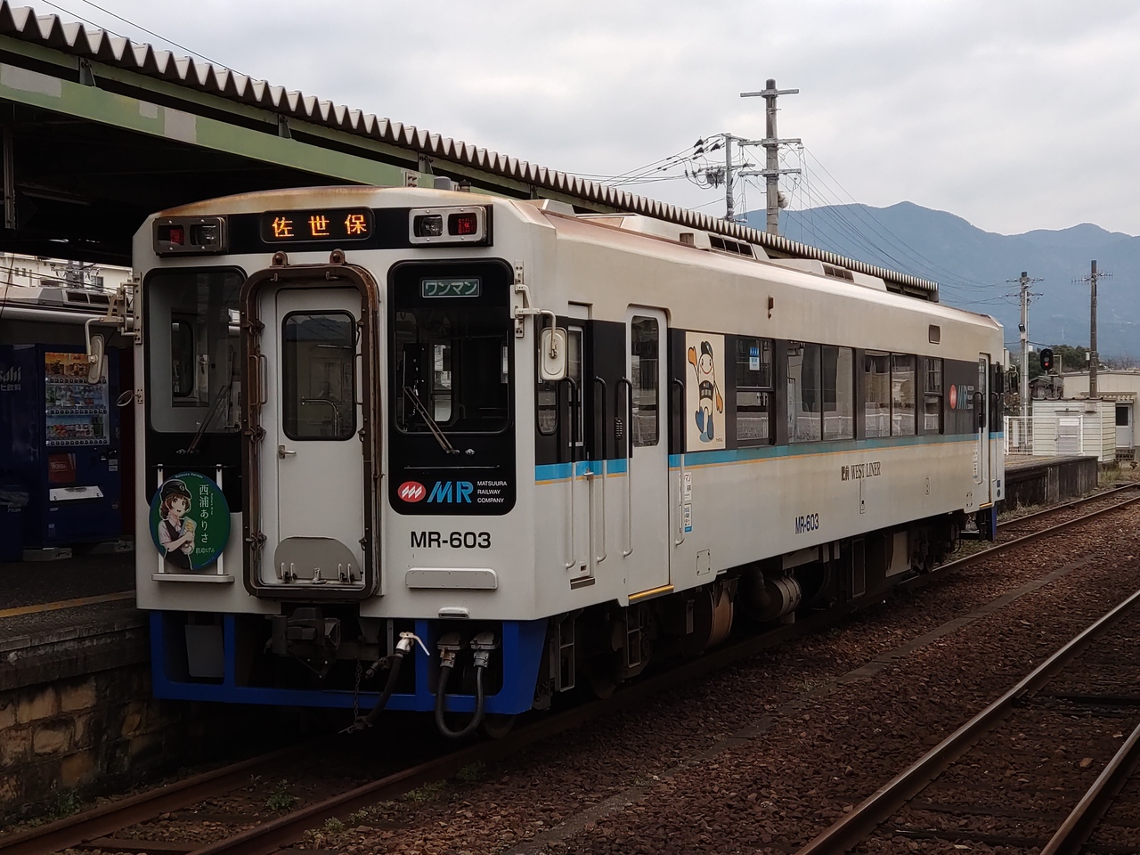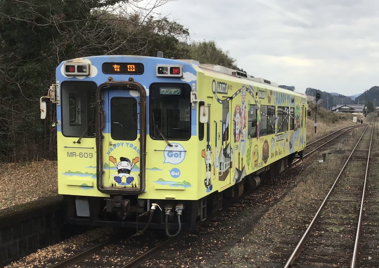 現在、全線を直通する列車はなく、伊万里で分かれています。有田~伊万里間には朝夕は1時間に2、3本、そのほかの時間帯は1~2本。途中の折り返し列車はありません。伊万里~佐世保間のうち佐々~佐世保間は1時間に2本の高頻度で運転されており、下りは朝4本、上りは朝3本、夜1本の快速も運転されていますが、佐々~たびら平戸口~伊万里間は1時間に1本程度の運転となっています。伊万里から佐世保間は2時間30分、有田から伊万里まで30分程度かかるので概ね3時間とかなりの時間がかかる路線でもあります。