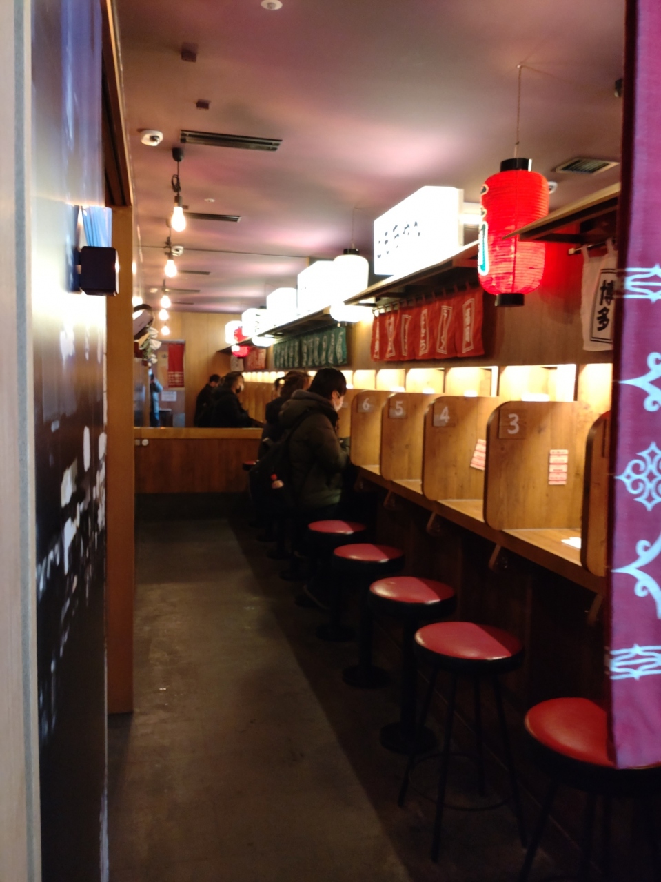 札幌・すすきの「ノルベサ」(観覧車のある商業ビル)の1階にあるとんこつラーメン店。2020年に出展しましたが、他地域の店舗と同様、「味集中システム」(カウンター席、暖簾、仕切り、オーダーシステム、替玉システム)で、食券購入による前金制。雰囲気も変わらず。ラーメンの材料、味ももちろん博多で食べた味。札幌と言えば全国屈指のラーメン激戦区であり、有名店も多数ある地域で「味噌ラーメン」「太めの縮れ麺」というイメージが強いものがありますが、スーブは同じ豚骨ベースが基本で、すんなり受け要られている模様。「替玉」の解説があるあたりが札幌なのかもしれません。札幌のお店に限ったことではありませんが、少しコスパが悪いのが残念。たまに無性に食べたくなるのですが、もう少し安いと気軽に通えます。