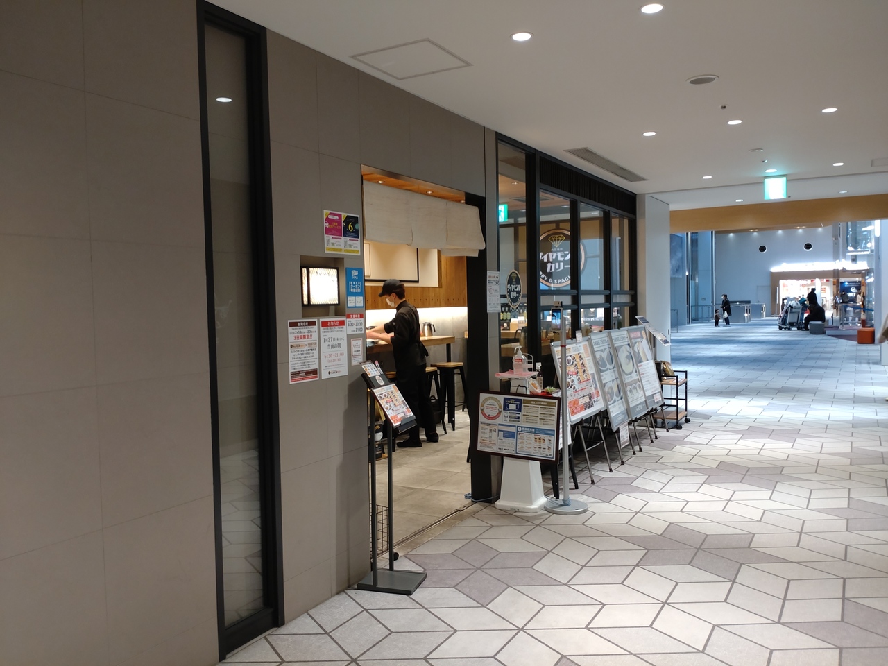 大阪空港の到着口を出た左側、中央ブロック2階にあるカレー店。大阪空港の全面改装を受け、先行開業した中央エリアに出たところにあります。かつて梅田で名をはせた旧大阪富国生命ビルの「地下街カレー」のルーツを受け継いだ欧州カレーで、大阪駅前第3ビルのお店に次ぐ2号店。メニューは、カレーライスに加えて、まぜカレー、カレースパゲッティで、カツ、エビフライ、唐揚げなどのトッピングの選択が可能。ちなみに「ダイヤモンド」は、一号店の大阪駅前第3ビルにあるお店が、四つ橋筋・御堂筋・曽根崎通に囲まれた五角形の区画がダイヤモンドに似ていることと、地価が大阪一高いことから呼ばれる通称「ダイヤモンド地区」に由来。
