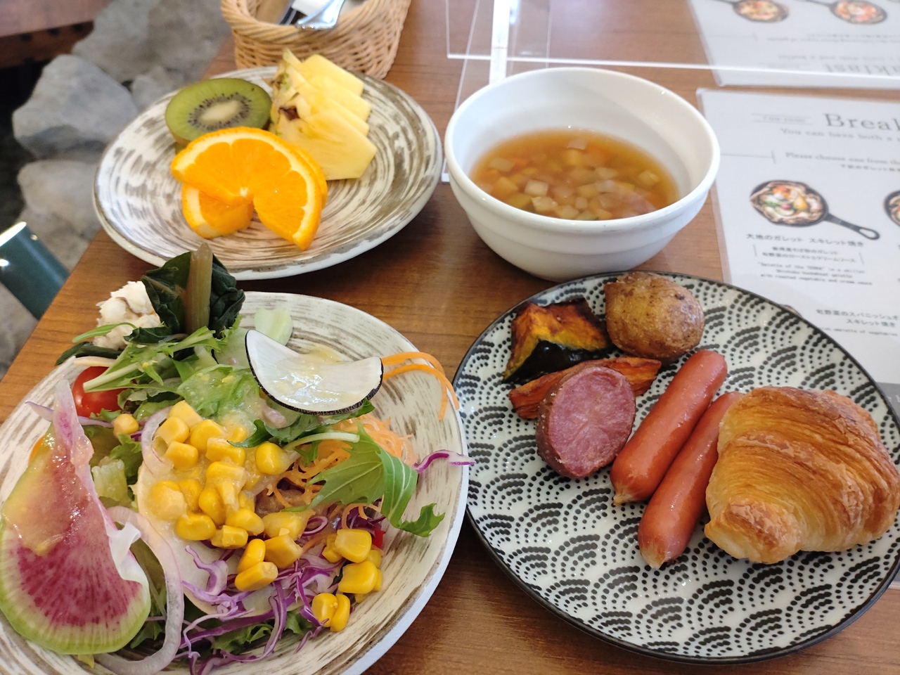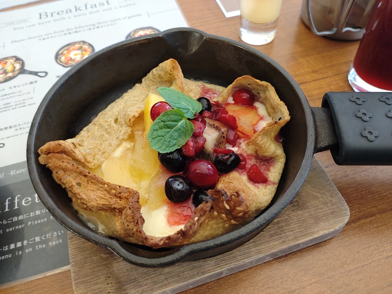 今回朝食で利用しましたが、旬野菜のローストとクリームソース、シーフード、林檎と季節のフルーツの3種類のガレットから選択。いずれも新得産のそば粉を使ったもので、高温のスキレットで焼き上げられており、ジューシーかつカリカリ。今回は旬野菜のローストとクリームチーズを選択。野菜を美味しく食べられました。