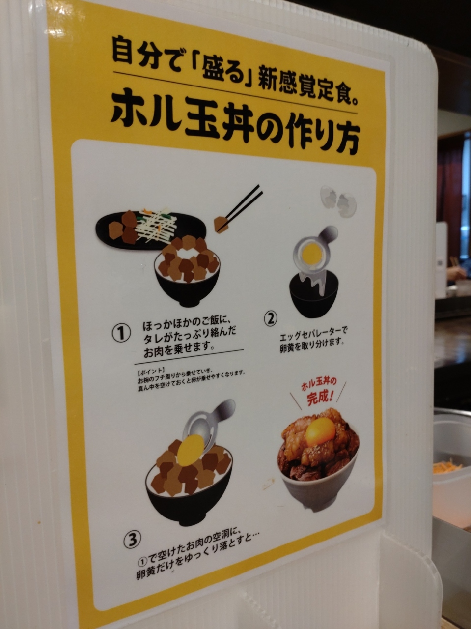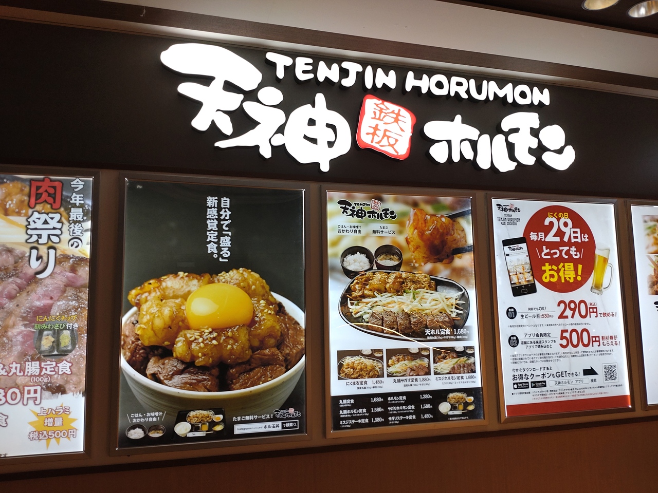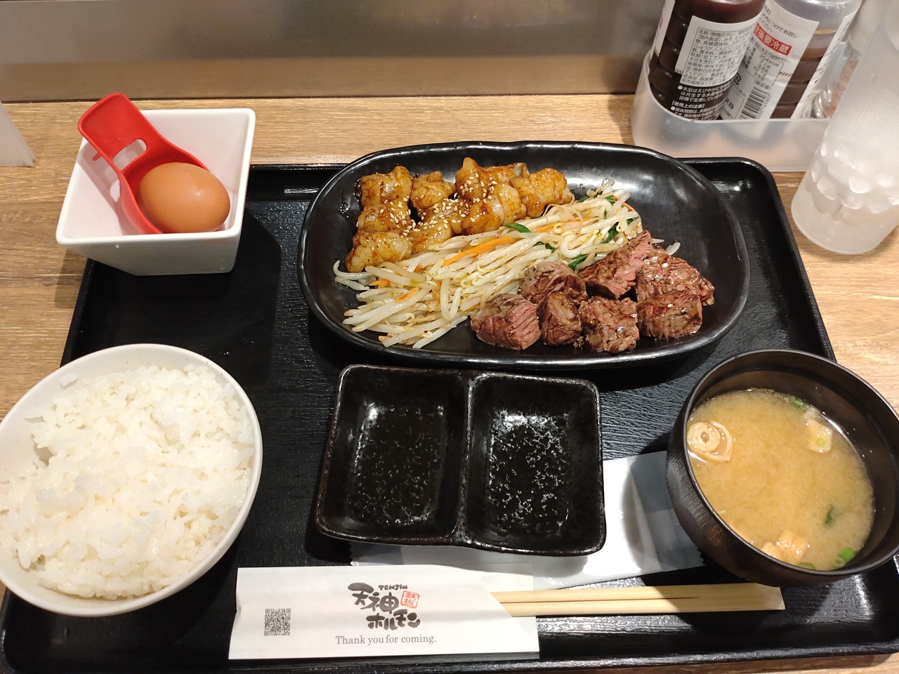 今回訪問した日は、29日の肉の日。肉の日は割引かあり、「国産丸腸とサガリステーキ定食」が100円引だったので、こちらをオーダー。新鮮なホルモンは外はカリッと中はじんわり。サガリはめちゃくちゃ柔らかい。赤身なので後でもたれないのも良い。生卵が一個無料サービスで、これを使って二杯目は、お店推奨の「ホルたま丼」に。B級グルメの代表のような味は、おいしくないわけがない。ご飯とお味噌汁のおかわりが自由というのも嬉しいサービス。やはり福岡で食べたい味かも。- 旅行時期
