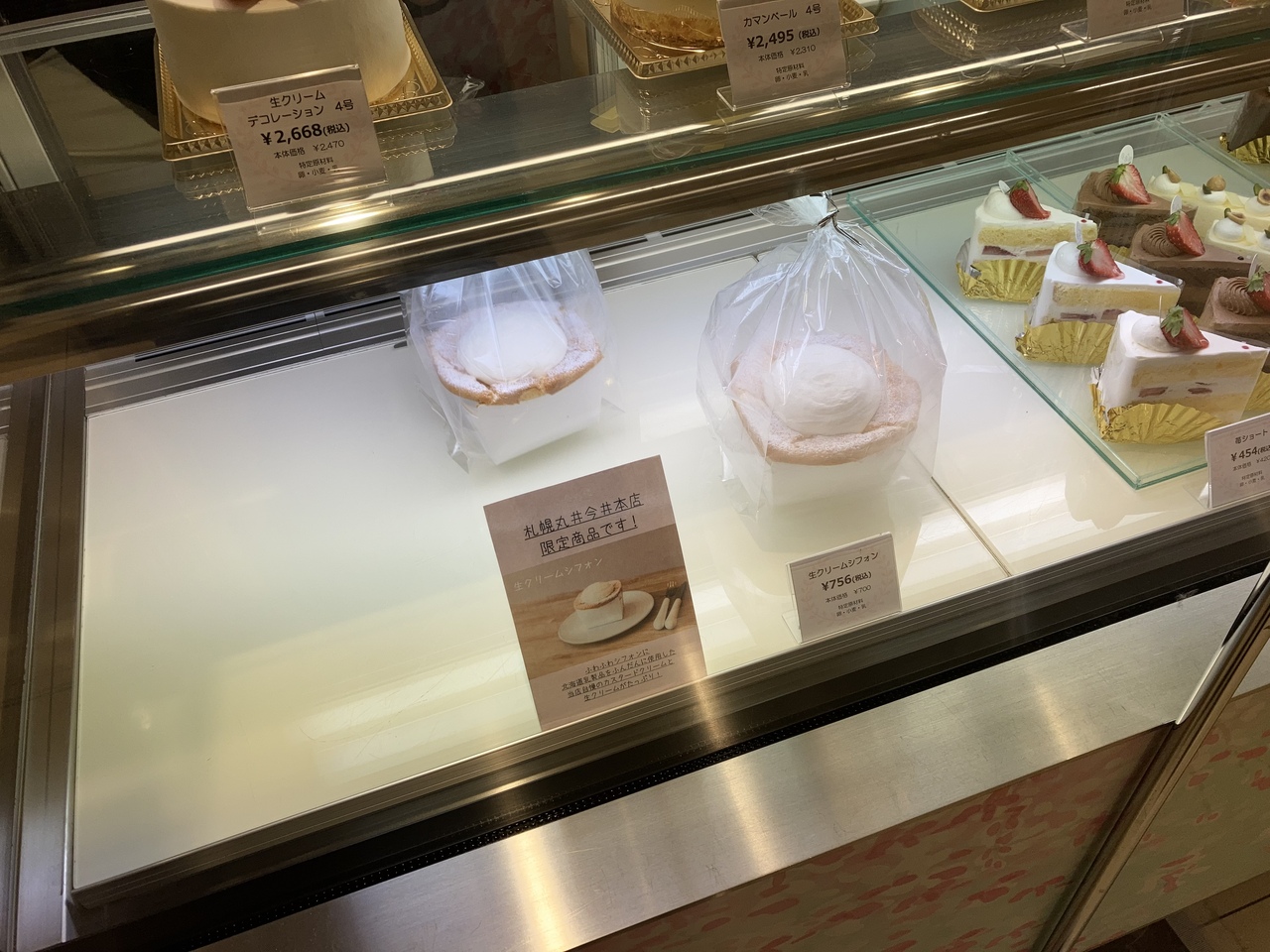 是非、丸井今井店で買って帰りたいのが「生クリームシフォン」。丸井今井店限定販売のケーキで、イチゴのショートケーキよりも一回り大きく、中にたっぷり入っている奏春楼カスタードクリームのまろやかさはたまりません。バニラビーンズが効いたシフォンケーキはふわふわで美味。上品な甘さの生クリームとカスタードクリームがダブルで味わえる贅沢なケーキです。- 旅行時期