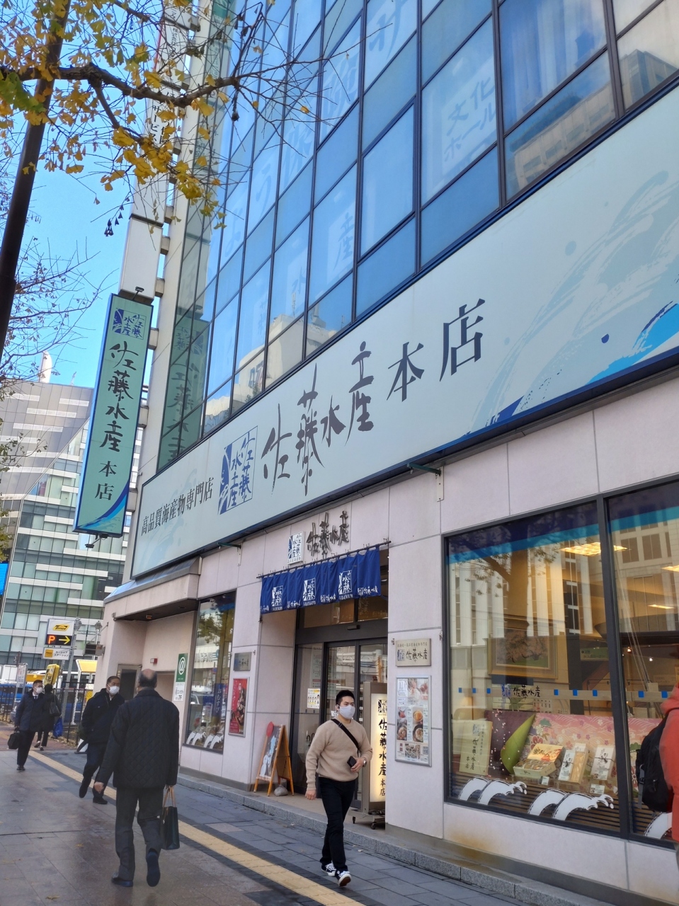 札幌駅南口からすぐ。駅の目の前にある佐藤水産の本店。佐藤水産と言えば、北海道産の鮭を主力商品として、天然物のみ、かつ石狩と千歳の自社工場て製造された商品のみ扱うお店。全国で行われる北海道物産店でもおなじみのお店の一つ。