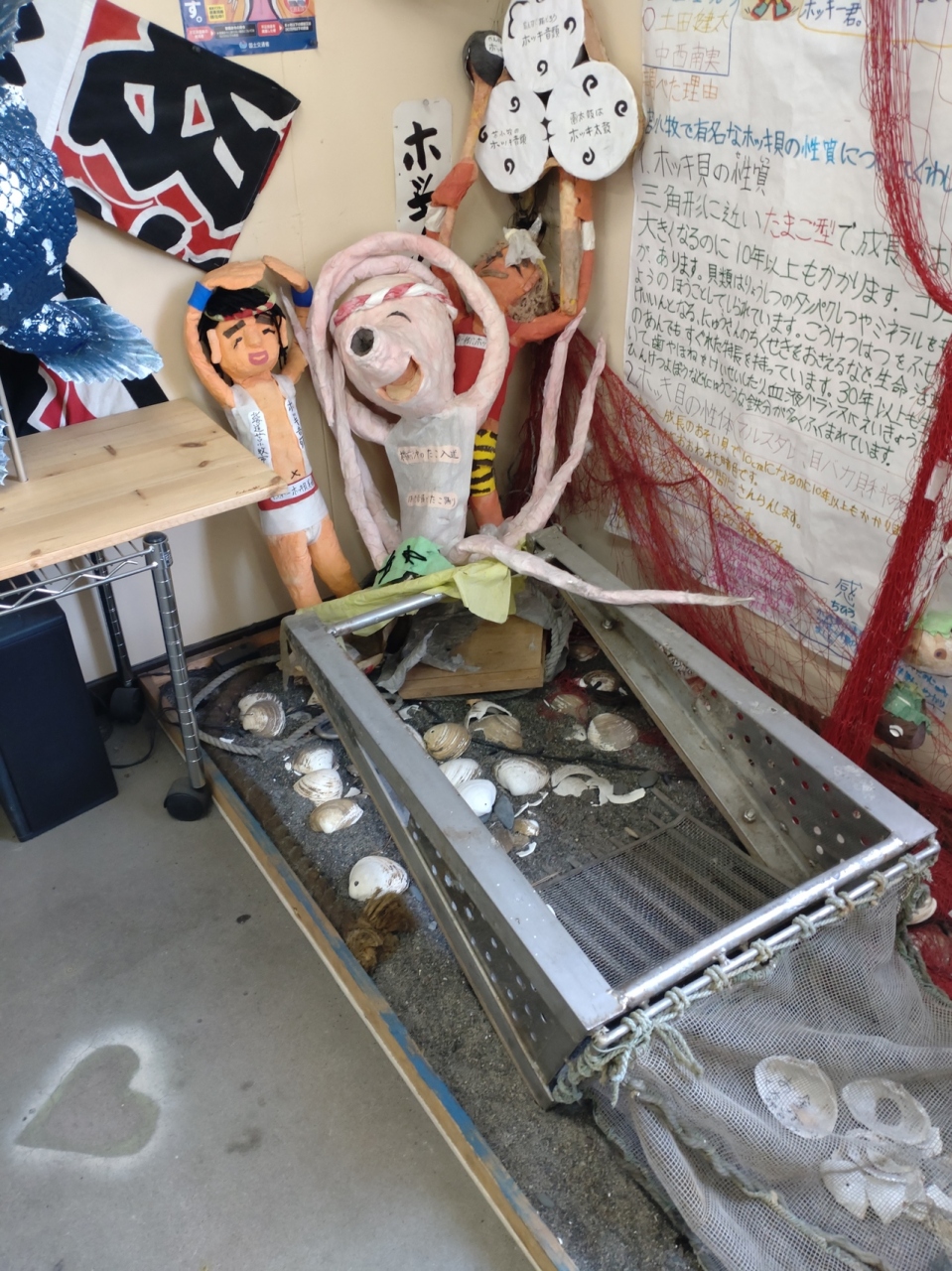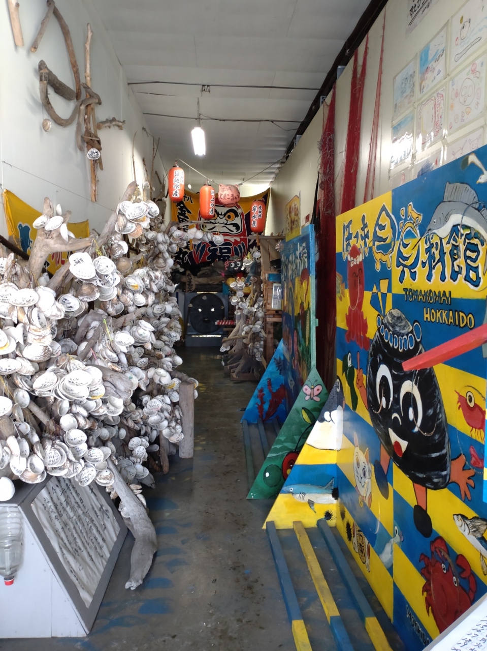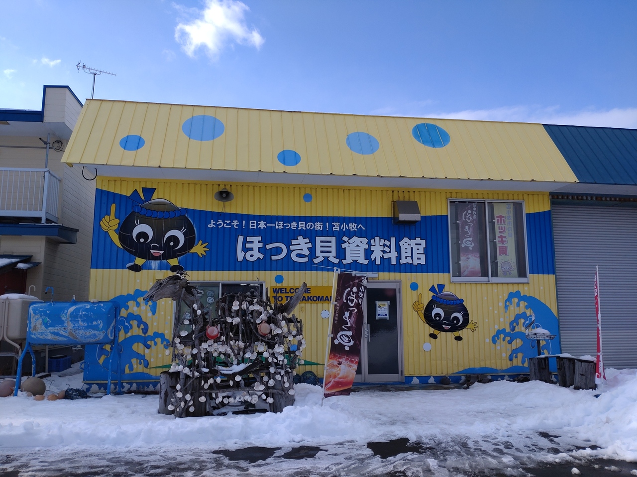 苫小牧・汐見大通り沿いの苫小牧市公設地方卸売市場内、海の駅ぷらっとみなと市場の南側にある資料館。日本のほっき貝漁獲量日本一を誇る苫小牧市の市民グループのボランティアによって運営されている資料館です。少し入りにくい雰囲気の建物ですが、ほっき貝のマスコットがカワイイ。入口には、ほっき貝に願い事を書いて吊るすというオブジェが少し不気味。展示室に入ると、少し地味ながらも面白みのあるほっき貝合わせ、ほっき貝漁で用いられる道具やほっき貝で作られた民芸品、創作遊具などが展示されてあります。これだけ徹底的にほっき貝を展示した資料館は他にはないと思います。ほっき貝のことがよくわかる資料館です。