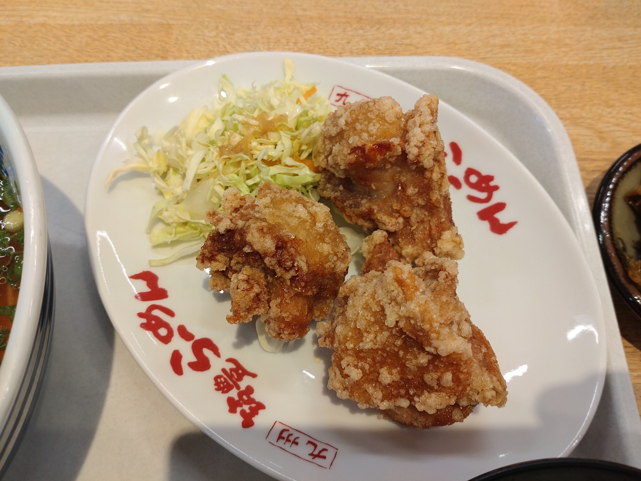 筑豊ラーメンとは、豚骨ラーメンを醤油と魚介ベースのタレを加えたスープのラーメンで、博多や久留米のラーメンとは微妙に異なります。今回は、イチオシという「醤油らーめん」と「からあげセット」をオーダー。まず、醤油らーめんは、鶏ガラと魚介ベースのスープで、かえしは九州の醤油を使用。このためスープには少し甘みが感じられ、東京で食べる醤油ラーメンとはかなり味が異なる印象。少し好き嫌いがあるかもしれない。麺は細麺だが、スープとの相性は悪くなかった。とんこつラーメンに飽きたら良いかもしれないが、普通の筑豊ラーメンでも良かったかなとも思った。唐揚げはノーマルだか、熱々て衣もしっかりとした醤油味で美味。定食類を頼めばご飯食べ放題なのも嬉しい。- 旅行時期