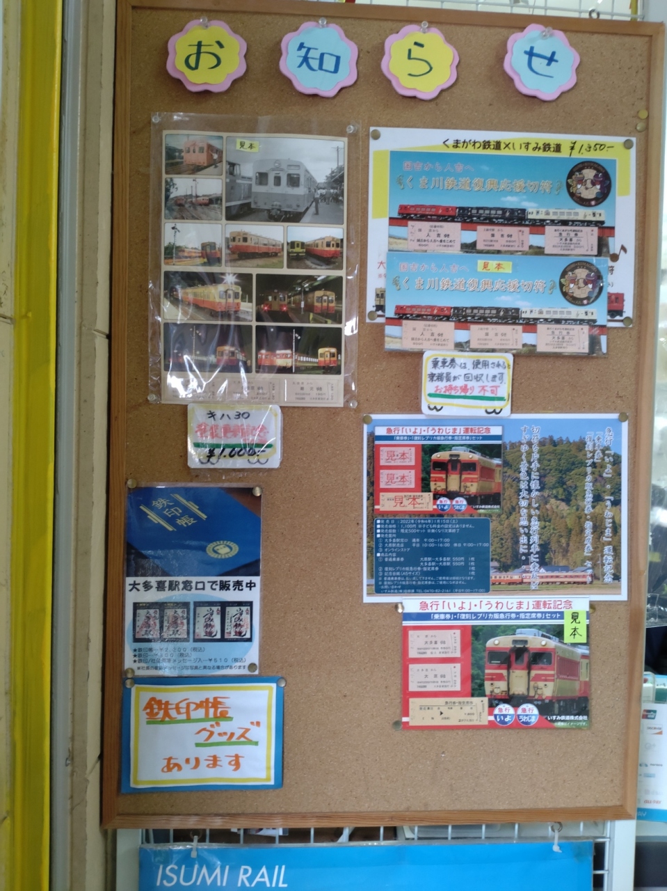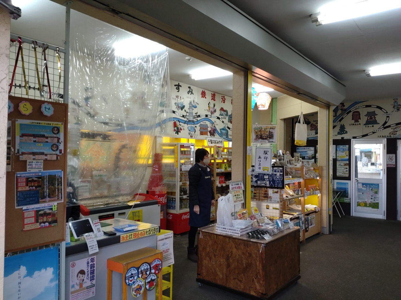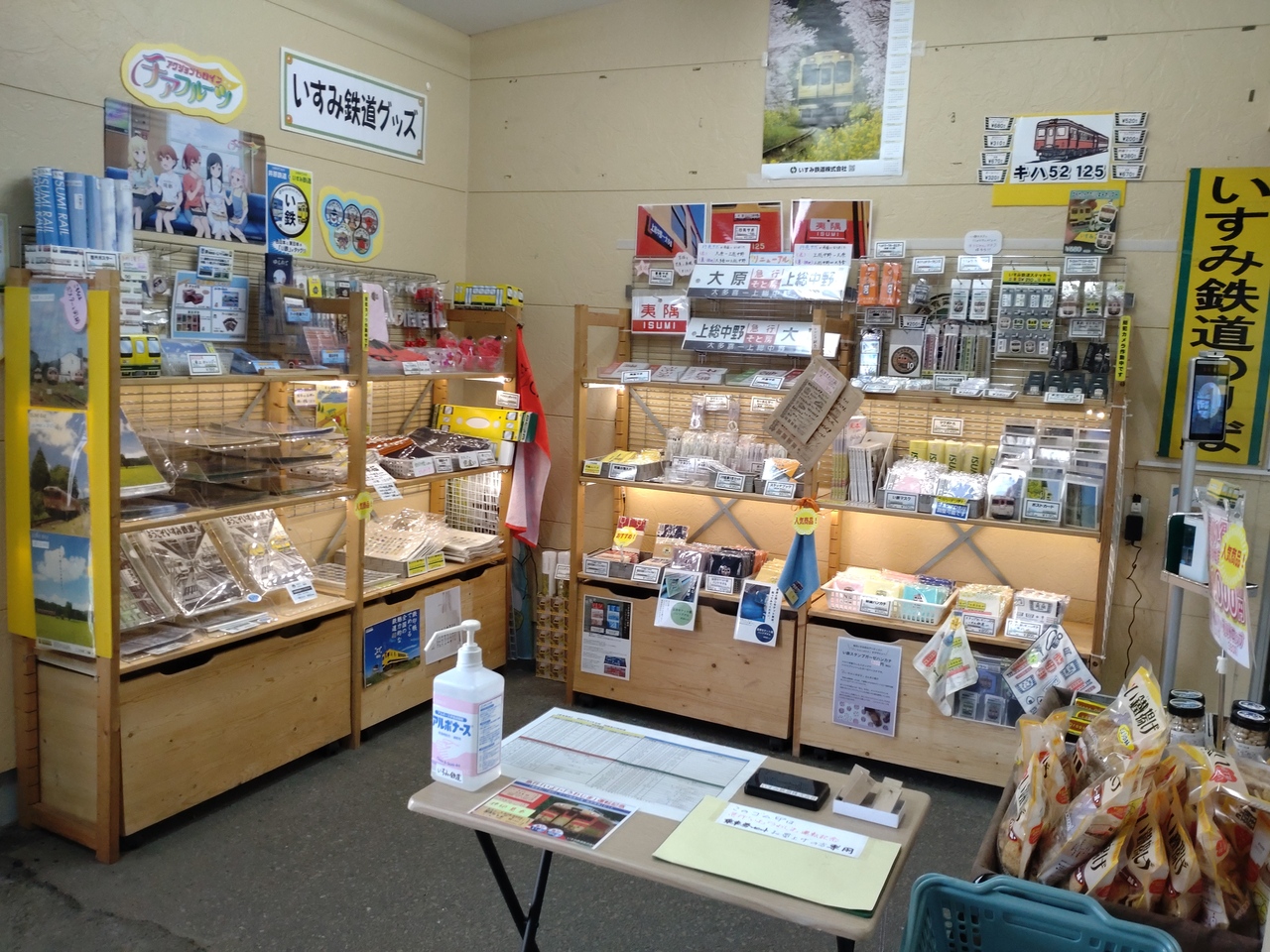JR大原駅に隣接したいすみ鉄道大原駅の改札口手前にある売店。いすみ鉄道の売店は、大多喜駅と国吉駅にもありましたが、2019年1月末に閉店してしまったので、現在はここのみ。外房土産の定番、鯵の開きをはじめ地元のお土産、記念切符をはじめ各種いすみ鉄道のグッズを販売。基本的には予約になるが、駅弁も販売しています。ついついグッズが欲しくなってしまうのが困ったところ。