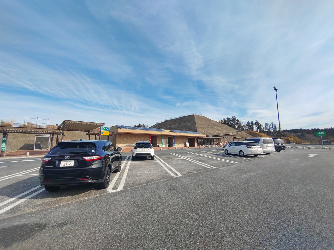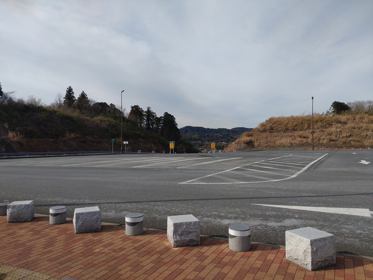 千葉県市原市にある圏央道(首都圏中央連絡自動車道)のパーキングエリア。木更津jCTから松尾横芝IC間(松尾横芝IC~大栄JCTは未開通区間)唯一のパーキングエリアで、アクアラインから茂原・東金に向かう場合の唯一の休憩ポイントでもあります。フードコートやレストラン、売店のないトイレと情報ターミナルのみが接地されたパーキングエリアで、上下線一体型の構造。ピラミッド型の築山があり、高滝湖がよく見えるとのことですが、寒い日だったので、登頂は断念しました。