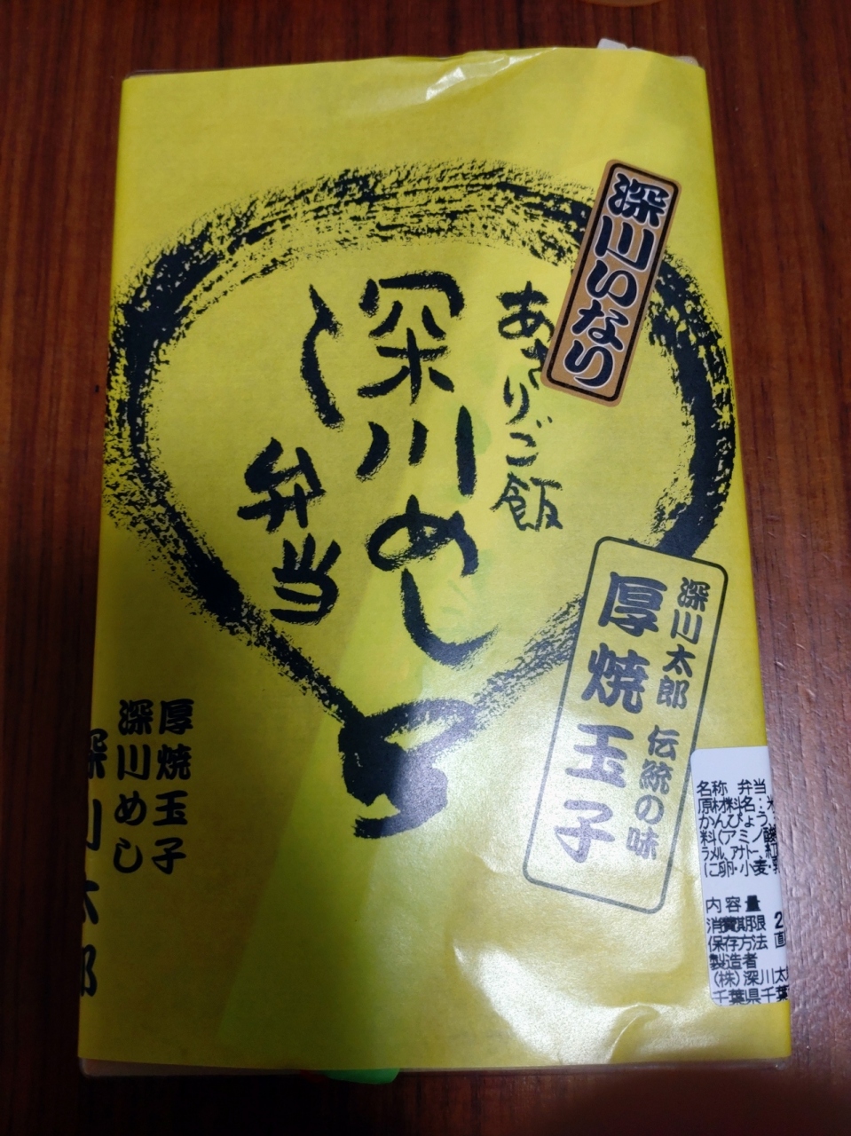 そごう千葉店の地下1階にあるお弁当のお店。あさりがたっぷり入った深川めしのお弁当と、秘伝のだしを使用し、1本1本手焼きで作られる厚焼玉子が有名なお店ですが、実は「深川いなり弁当」美味。普通のいなり寿司とは異なり、酢飯ではなくあさりご飯が甘辛く煮込んだ油揚げの中に入っています。アサリの旨味と油揚げの甘辛さの相性抜群で美味。
