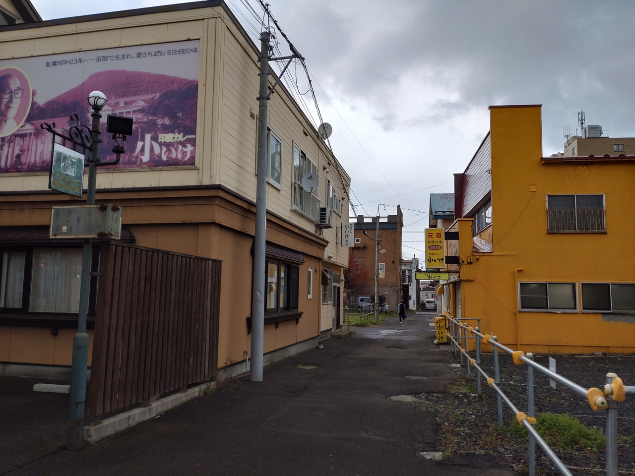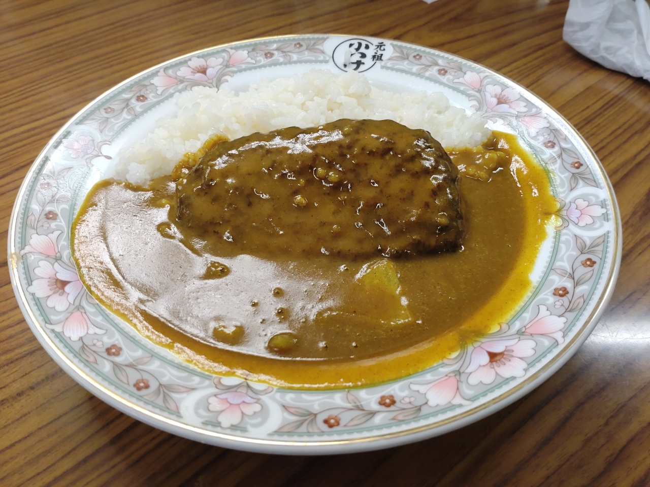市電十字街電停から電車通りを谷地頭方面へ徒歩5分くらい。宝来町電停近くにあるカレー店。函館のカレーというと「五島軒」を思い越しますが、こちらのカレーはかなり庶民的。しかし、病みつきになる味。三日三晩、大きな寸胴鍋で煮込んだブイヨンに、4時間炒めるという独自ブレンドの小麦粉と20種類の香辛料に隠し味の北海道産生クリーム、マンゴーチャツネなどを加えて作られたルーは、家庭的な印象ながらもお店でしか出せない味。口に入れたあと少し立つと唐辛子の辛味がやってきて、その後じわじわとスパイスが、さらにブイヨンの旨味が全体を整える。具材は豚肉と玉ねぎのみでシンプル。福神漬と紅生姜と一緒に食べるとまろやかになり、また美味。カレーだけでも良いのですが、ハンバーグカレーが美味しいと聞いたので、今回はこちらに。ハンバーグの味とカレーのコラボがなかなかよい。厚みのあるハンバーグはジューシーさがあり、辛さを緩和してくれる。ちなみにご飯は固めに炊かれていて、うまくルーと絡むように工夫されているようです。