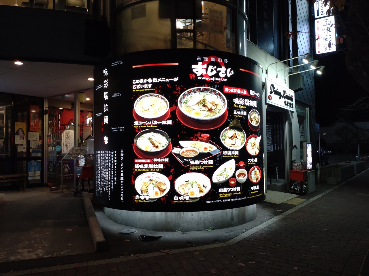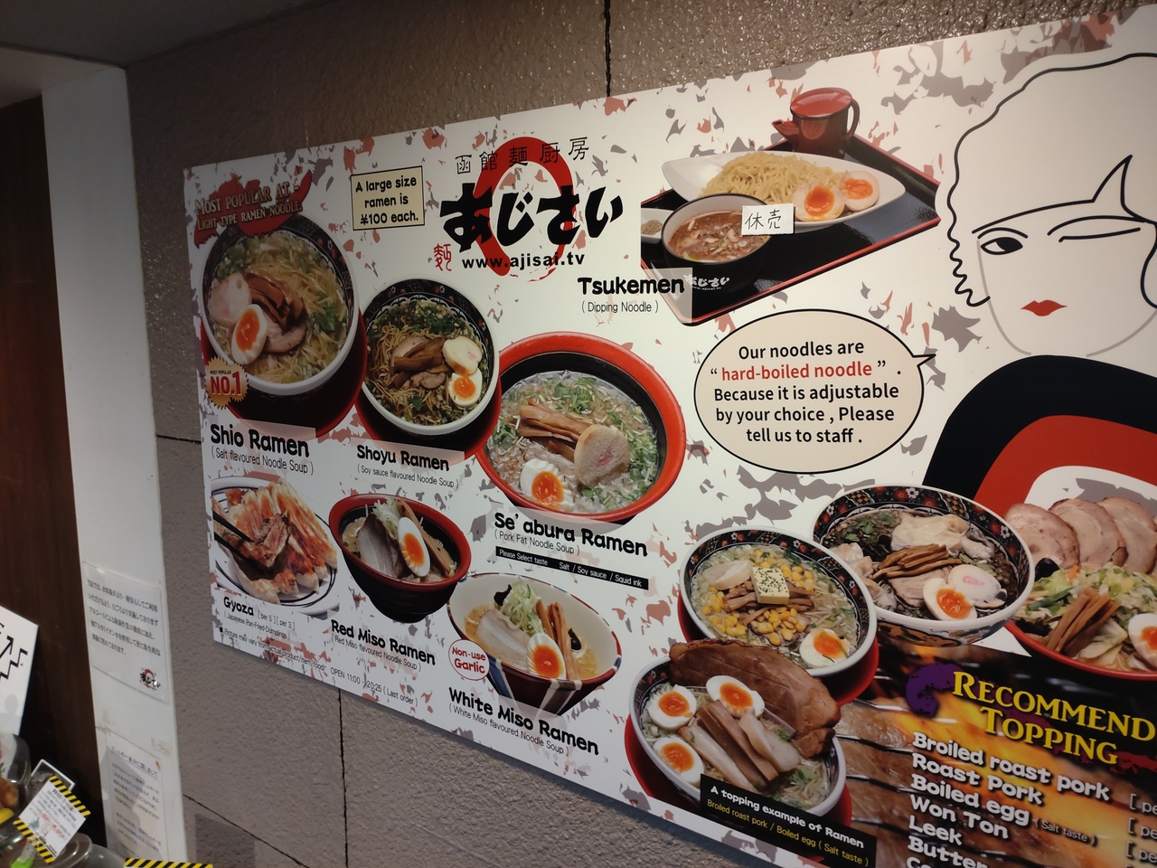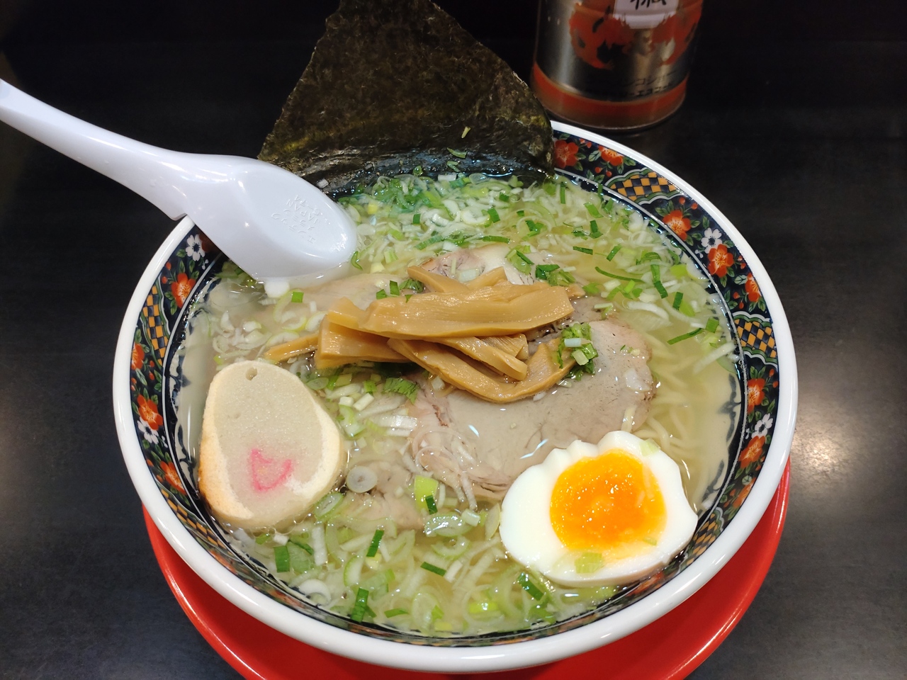 五稜郭タワー前にある塩ラーメンの名店。函館でラーメンといえば必ず名前の上がるお店で、昭和初期創業の老舗でもある。昆布をベースに、豚骨と鶏ガラ、ニシンやホタテの貝柱など北海道産の厳選素材を煮込んだスープは、雑味のない、コクのある、しっかりとした味のある透き通ったもの。天然岩塩を使った塩加減はちょうどよく、細めのストレート麺との相性は抜群。完成されたラーメンとも言える。具は適度に脂の入った叉焼、メンマ、煮玉子、ネギとシンプルですが、これがまたスープとよく合う。スープもしっかり頂ける、これまで食べた中で一番の塩ラーメンです。