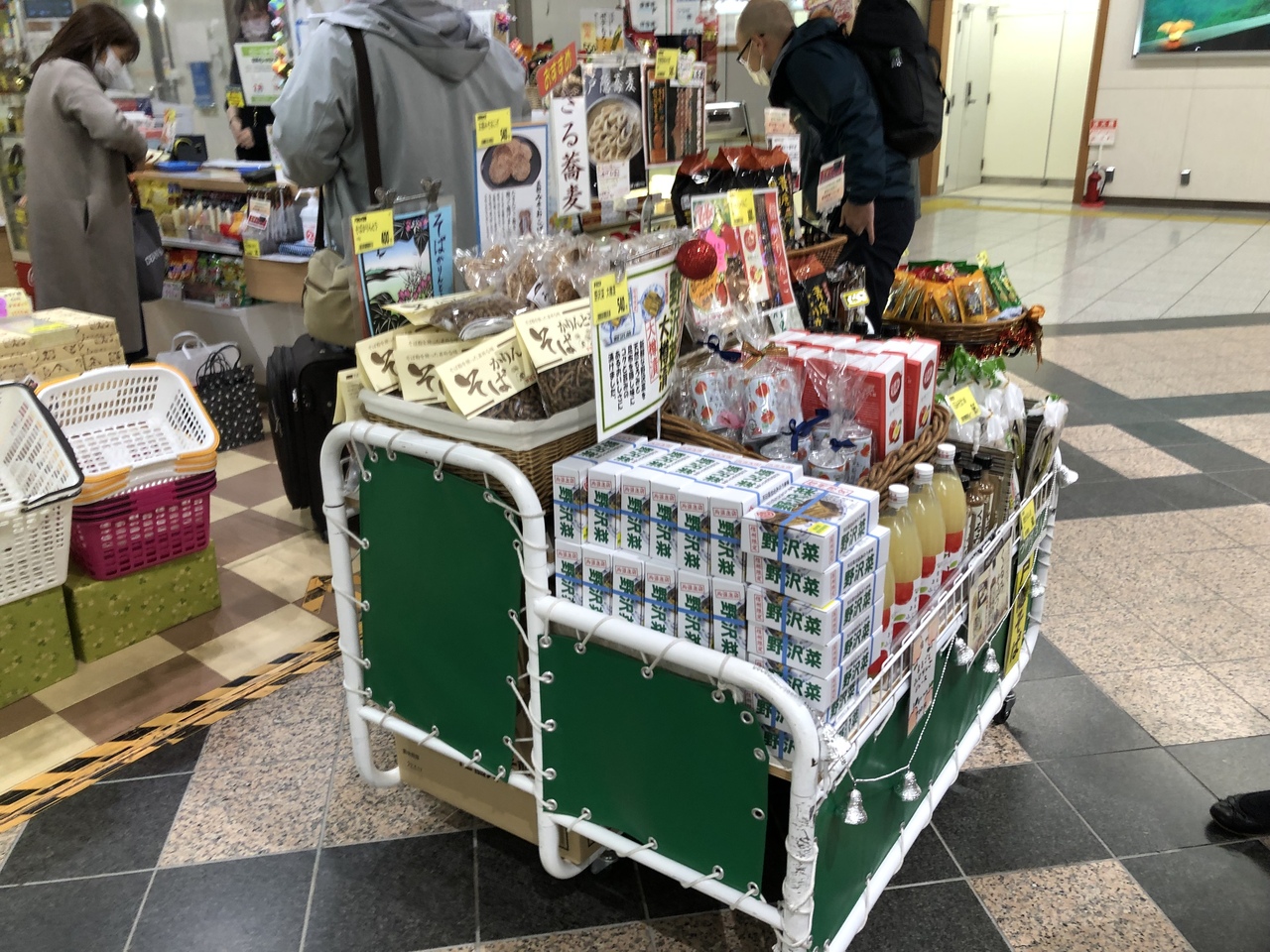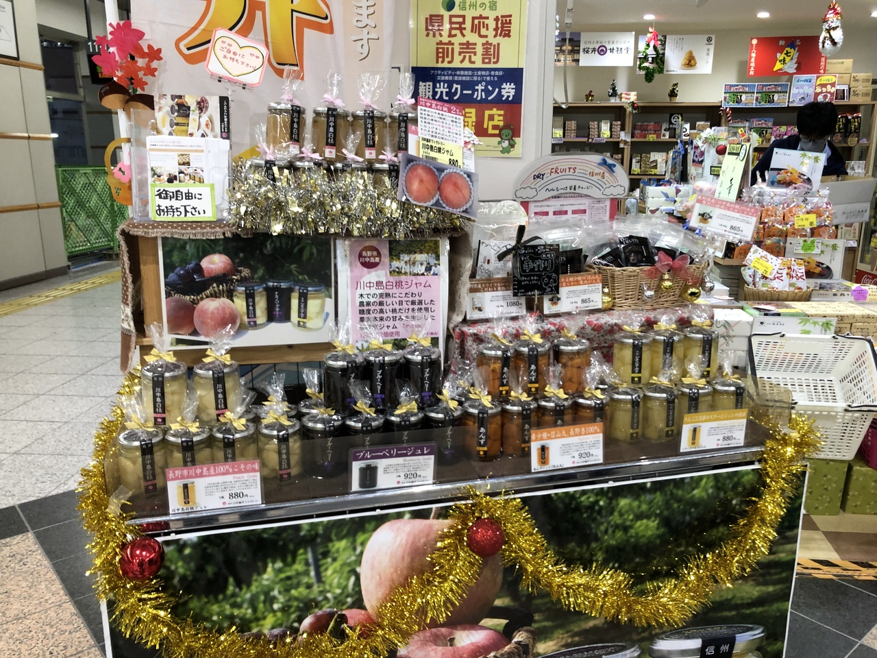 JR長野駅の北陸新幹線改札口を入ってすぐのコンコースにあるお土産店。お土産だけでなく、お弁当や飲みものも販売しており、売店的な役割も有しています。みすゞ飴やお布施の栗羊羹をはじめとするお菓子、野沢菜などの漬物、蕎麦、酒類などなど信州名物のお土産物は大方揃っているので、お土産を忘れた時や時間がない時にも便利。Suicaなど交通系ICカードの利用可能です。朝6時半から空いているので、早朝の列車でも利用可能。一方、夜は19時半には閉まってしまうので注意。新幹線の最終までとは言わないのですが、できれば21時くらいまで空いていると嬉しい。