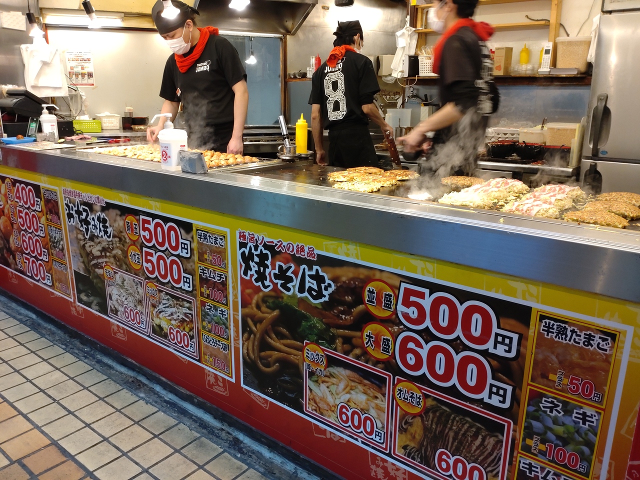 JR荻窪駅北口を出てすぐ、タウンセブン(ただし、外にある)にある粉モンのお店。基本的にはテイクアウトのお店ですが、お店の横に長椅子もあるので、そこで食べることも可能。少し勇気がいるかもしれませんが。大阪に本社のある関西系のお店ですが、東京にも店舗展開しており、派手なお店の外観も含めて馴染んでいる気がします。お好み焼きは鰹節ベースの出汁で風味が広がる。分厚い鉄板で焼くので、キャベツがシナシナになっておらず美味。焼きそばはもちもちの太麺で、ソースは辛すぎず絡みがよくバランスが良い。普通のお好み焼きや焼きそばは500円ですが、350円のアウトレット。出来たてではないのでアウトレットと言うそうなのですが、材料も作り方も変わらす、少し冷めているだけで150円引き。かごの中に商品が入っているとついつい買ってしまいます。
