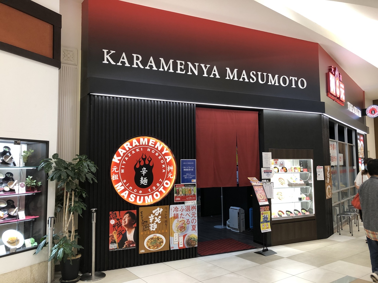 1987年、宮崎県延岡市で発祥したと言われる辛麺の専門店。辛麺は、カップヌードルでも販売されるなどメジャーな麺になりつつあり、また桝元は、最近、宮崎だけでなく、福岡、佐賀、熊本、大分に加え、山口、大阪、神奈川、群馬にも店舗を展開しているので宮崎でなくても食べられるますが、宮崎に行くと食べたくなるものの一つであることにかわりはありません。ちなみに桝元の店舗には、直営店とフランチャイズがありますが、こちらは直営店。イオンモール宮崎の1階のレストランコートにあります。