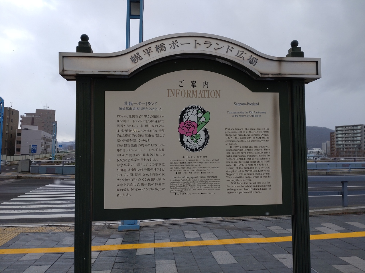 現在の橋は、3代目の走っていたの老朽化と激しい交通渋滞解消を目的にかけ替えられた4代目のもので、1995年に完成しました。歩道部分には、札幌市がアメリカ・オレゴン州のポートランド市との姉妹都市提携35周年を記念して作られたポートランド広場があり、ポートランド市から寄贈された金属彫刻とともに橋の上に橋があるという珍しい橋になっています(冬季以外は登ることができる)。- 旅行時期
