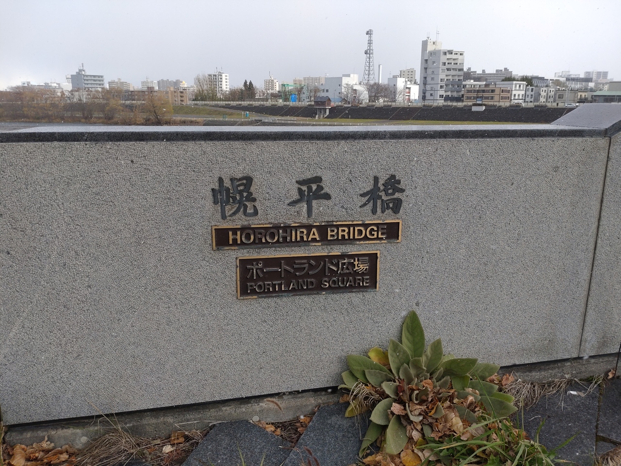 中島公園側の米里行啓通と中の島側の白石中の島通を結ぶ豊平川に架かる橋。もとの橋は、1927年(昭和2年)に江別の道議会議員である河合才一郎氏が、大正末期にりんご園の広がる中の島と中島公園を結ぶ橋を架けたいという夢の計画を実現するため、私費投じて架けた全長159m、幅5mの木造の橋。当時、個人が架けた橋としては日本一とされたと言う。橋の名前は札幌の「幌」と豊平の「平」(当時、豊平区は札幌市ではなかった)から取ったもので、この橋が札幌の発展に大きく寄与したことは間違いありません。