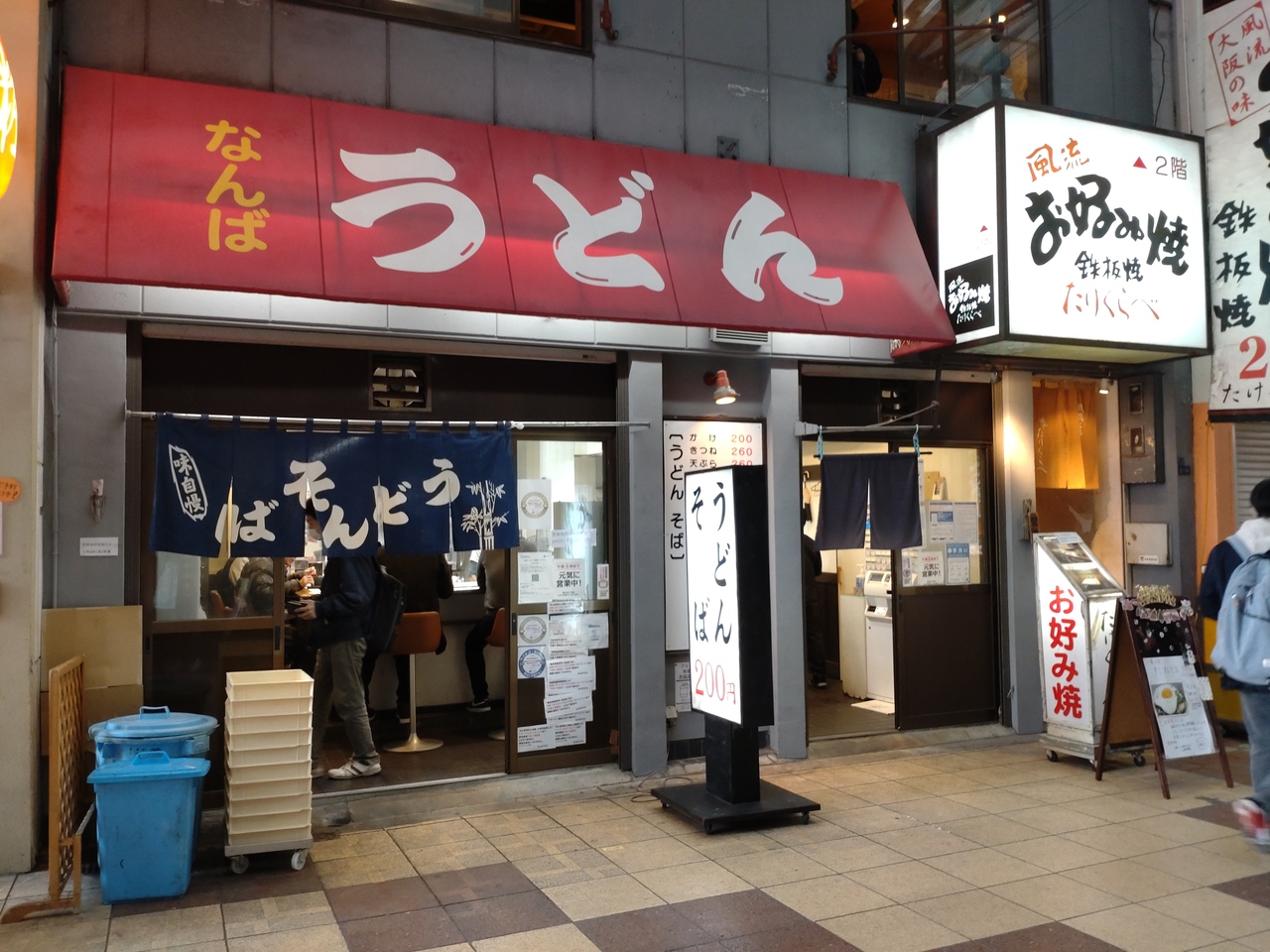 南海なんば駅からすぐ、なんば南海通商店街はいってすぐのところにあるうどん店。カウンター席のみ(従って立ち食いスタイルではない)のお店は、昼時を過ぎてもお客さんが絶えない印象。昭和風の外観、店内のお店は、お店の雰囲気とは合わない現金専用の食券機が2台ある。まず、驚くのかその安さ。かけうどん200円、きつねうどんが260円、カレーうどんが370円、肉うどんが400円(これでも値上げしたとのこと)。しかし、さすが大阪で鍛えられているお店。うどんは茹で麺なのでコシはなく、柔らかいものですが、お出汁はカツオガ効いた濃いもので、まさに大阪うどん。もちろん注文したらすぐに提供されるのも嬉しい。今回は天ぷらと生卵が入った「スタミナうどん」(いわゆる天玉うどんだと思う)を食べましたが、天ぷらにはイカが入っていて美味。まさに「安い、早い、うまい」の表現がぴったりのうどん店です。なお、そばの選択も可能です。