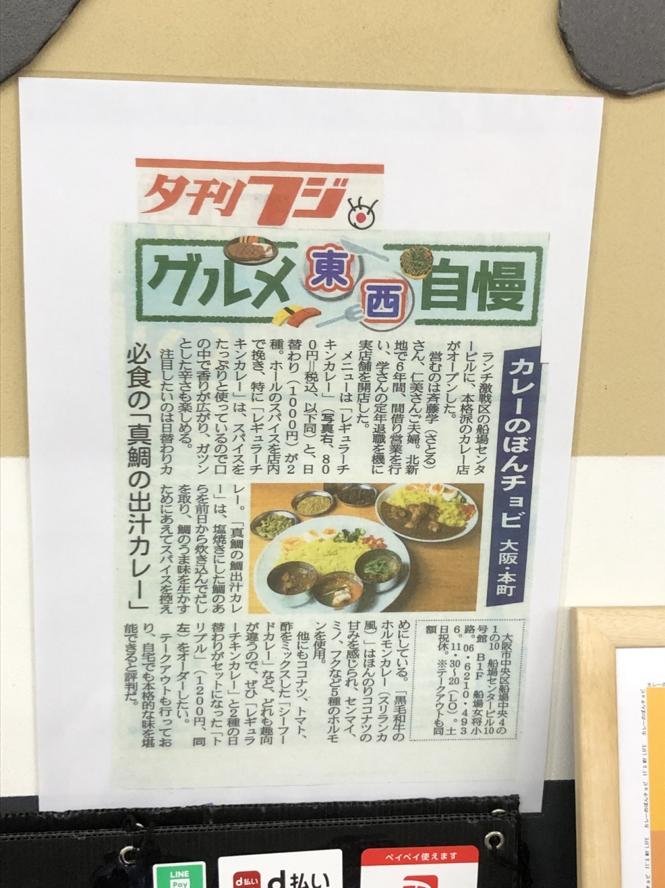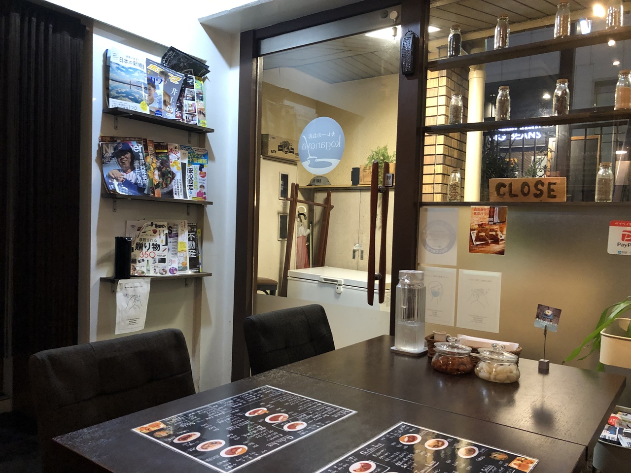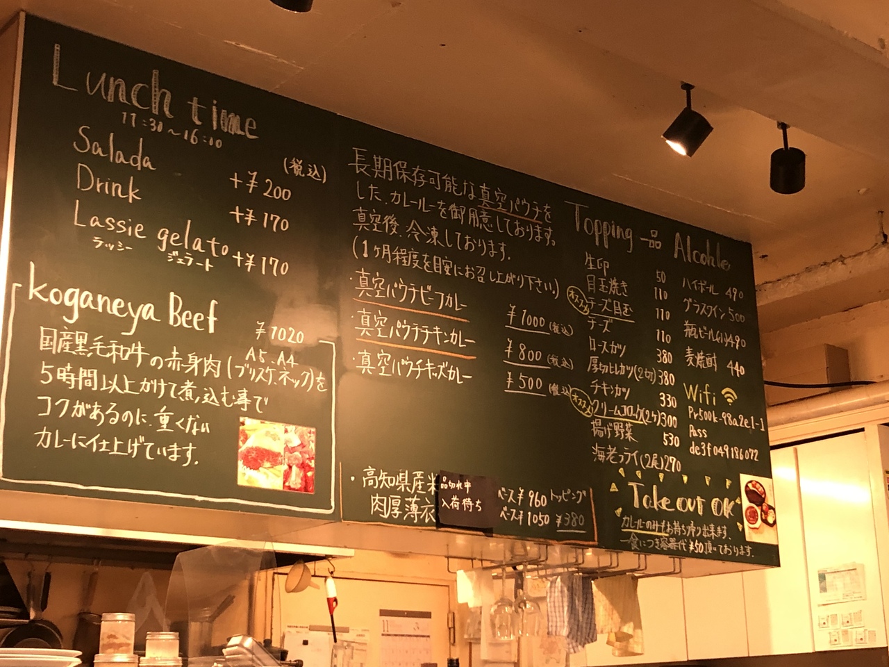 せんびる(船場センタービル)10号館地下1階、船場女将小路にあるカレー店。店内はカウンター席とテーブル席があり、店内では店主の奥様がファンというBon Jovi(ボン・ジョヴィ)のBGMが流れていたり、フィギアが置かれていたりします。もともとは北新地で毎週月曜日のみ、ラーメン店を間借りをして営業していた「幻のスパイスカレー」と呼ばれていたカレー店で、2021年3月にこちらにオープン。