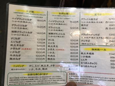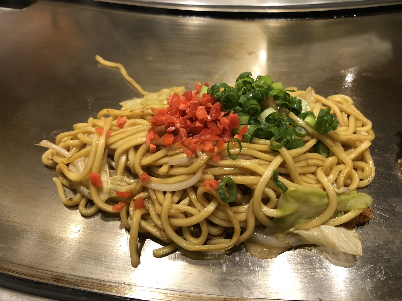 メニューは大きく分けて、ねぎ焼、お好み焼、焼そば、鉄板焼で、ねぎ焼は1000円~。人気はいか・牛肉・豚肉・すじの入った「ハイデラックス」と「すじねぎ」のねぎ焼とのこと。そこで今回は「すじねぎ」入りのねぎ焼をオーダー。こちらのねぎ焼きは、生地よりもネギがたっぷりで、焼き上がりに醤油とレモンを絞ってさっぱり仕上げられており、軽くいただけます。すじとこんにゃくの異なる食感と旨味がでていて美味。もう少し食べられそうだったので、焼きそばもオーダー。このお店の出す焼そば専門店(やきそば亭)があるくらいで、おいしいと聞いていましたが、期待を裏切らない味。オーソドックスな焼きそばながらも、もちもちした麺の食感と甘口のソースが相性抜群。是非、ねぎ焼きと焼きそば、両方味わいたい。- 旅行時期