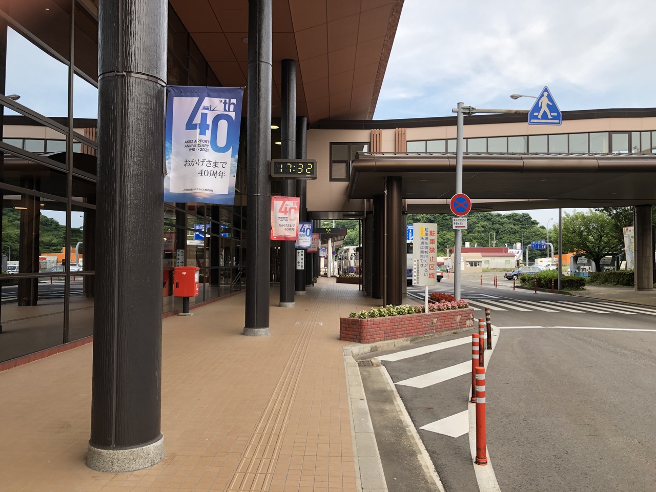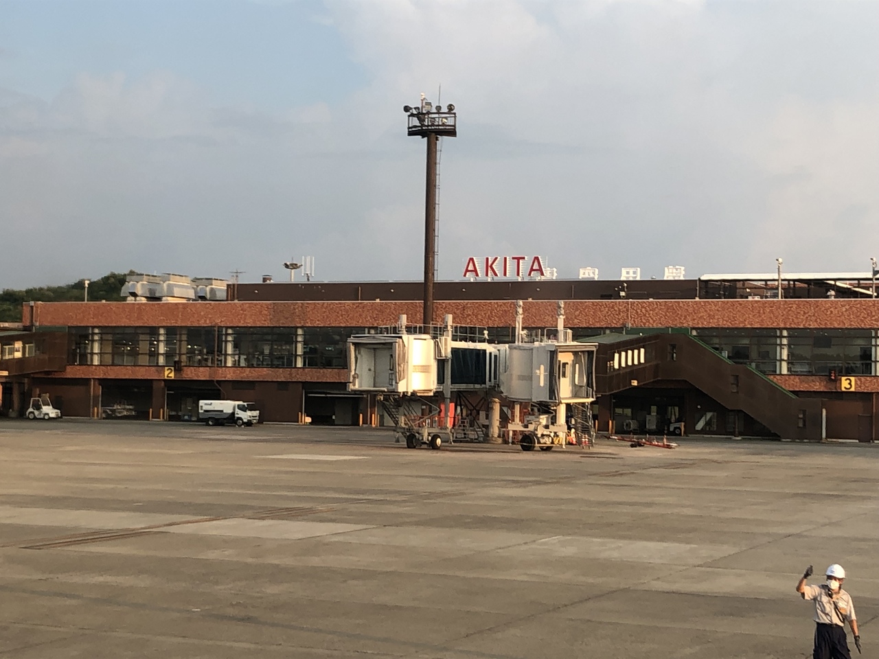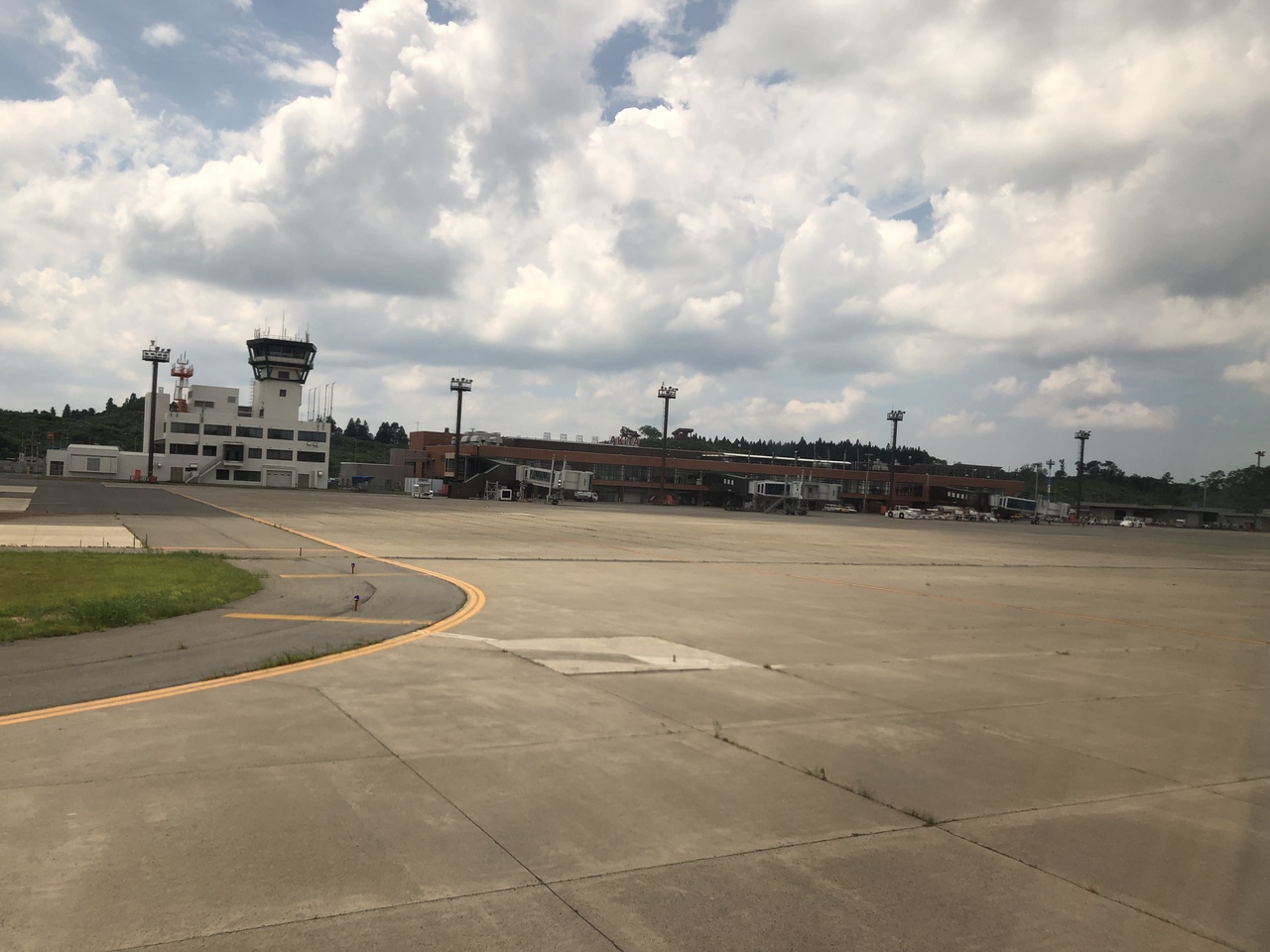 秋田市中心部から南西に約25km。旧雄和町(現、秋田市)にある、東北地方で初めて2500mの滑走路を備えた大型地方空港。もともと秋田空港は、市内中心部から約7kmの秋田市新屋町の海岸砂丘の近くにありましたが、冬になると日本海の横風の影響を受けるなど欠航も多く、大型化も困難であったため、1981年6月、旧雄和町の丘陵地に移転しました。2500mの滑走路を整備したことから開港当初は、東京線に当時最大クラスの旅客機であるスーパージャンボ(ボーイング747)やそれに次ぐ大きさのトライスター(ロッキード・トライスター)が就航。1991年にはJALが就航、ダブルトラックとなり、当初はボーイング767など大型機を使用していました。1997年3月の秋田新幹線開業後、利用客数の伸びは鈍化していますが、フルサイズの新幹線ではなく、東京~秋田間で3時間50分~4時間10分と、1時間10分のフライトでも十分対抗できることから、東京への往復はまだまだ飛行機も主役。東京便、大阪便、札幌便はANA、JALのダブルトラック。現在は、東京線はANAが10便(5往復)でボーイング767、737、エアバス321、JALが8便(4往復)でボーイング737を使用。この他、大阪・伊丹線 ANA6便(3往復)、JAL6便(3往復)、名古屋・中部線ANA4便(2往復)、新千歳線 ANA4便(2往復)、JAL4便(2往復)と就航便数が多く、現在も東北地方の主要空港と言えます。数年前まではANAがトリプルセブン(ボーイング777)を就航させていたほか、JALも臨時便でボーイング787を飛ばすなど、東北地方の空港の中では大型機の発着が多い空港ともいえます。