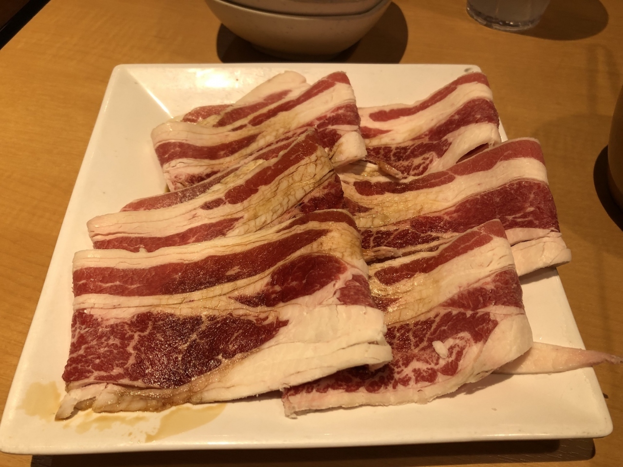 メニューは他の焼肉きんぐと変わらず。食べ放題でありながらもオーダー式で、お肉の質も食べ放題としてはレベルが高い。看板メニューの「きんぐコース」にしましたが、花咲上ロースはお肉は柔らかいものの、ややタレが甘い。きんぐカルビは脂身も多いものの、レベルは高い気がした。すき焼カルビは、脂身が多いものの意外とさっぱり。