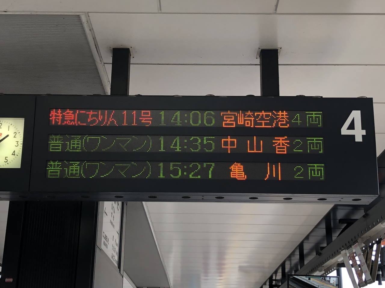 特急券については、大分駅で改札を出ずに「ソニック」と「にちりん」を乗り継ぐ場合、通しで計算する特例があり、宮崎方面から大分でのにちりんからソニックへの乗り換えは臨時列車を除く全て、小倉方面から大分でのソニックから宮崎への乗り換えは一部が接続しており、乗り換え時間にストレスはありません。- 旅行時期