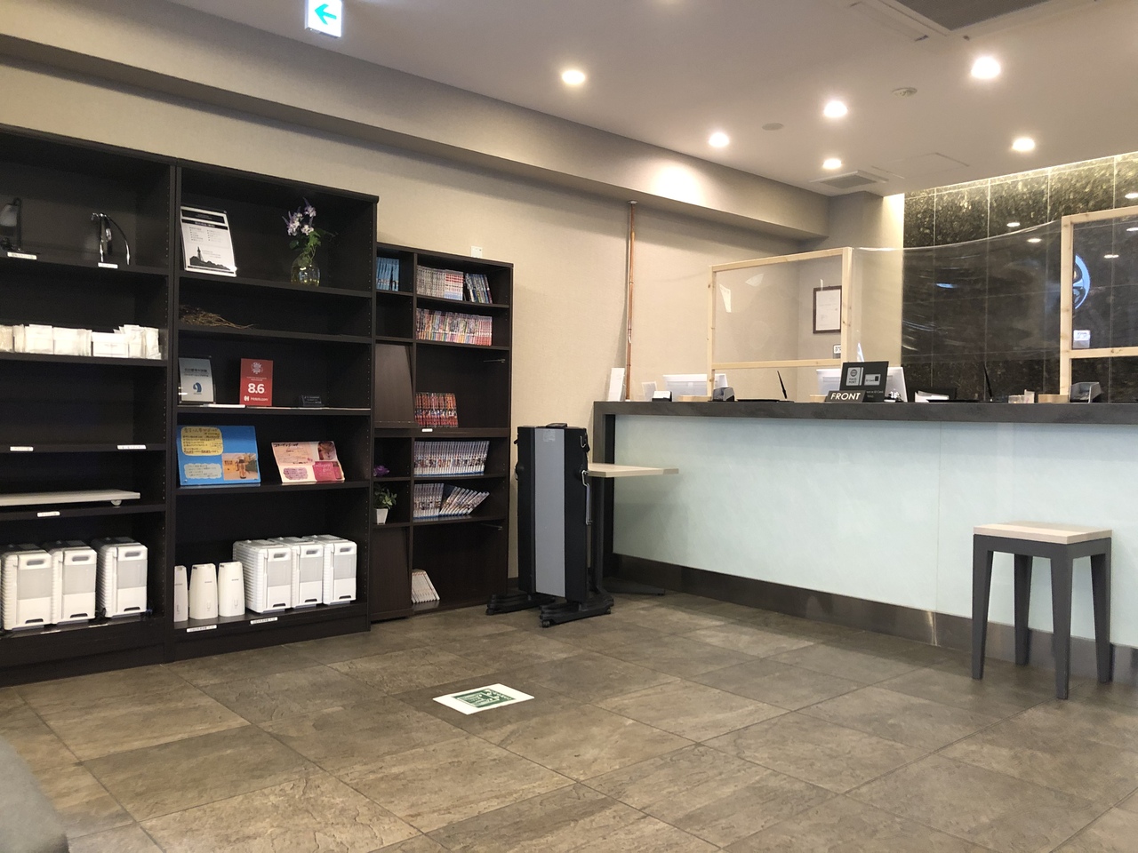 1階はフロントで、ソファのあるロビー、その先には朝食会場ともなる休憩スペースがあります。1階の奥には男女別の大浴場(最大5人なので中浴場くらいか)があり、小さいながらもサウナがあるのは嬉しい。ランドリーコーナーもあるので長期滞在にも対応しています。