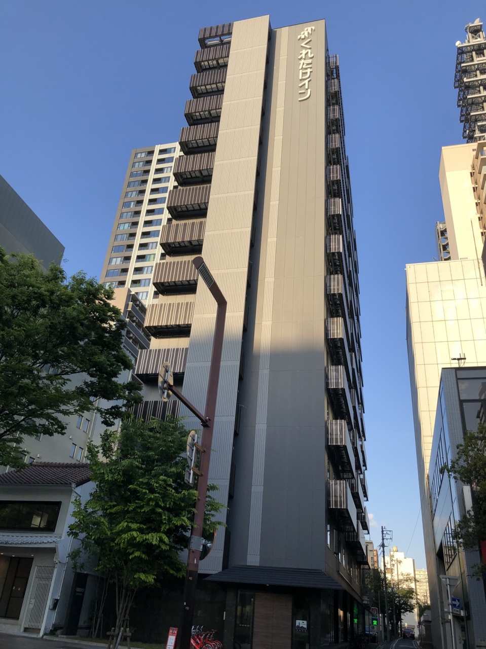 地下鉄名城線・桜通線久屋大通駅から徒歩5分くらい、セントラルパークの横にあるビジネスホテル。細長の建物のホテルで気をつけないと通過してしまいそうな感じ。エントランスも大きくないです。15階建、229部屋のホテルで、デラックスシングルルームがメイン。