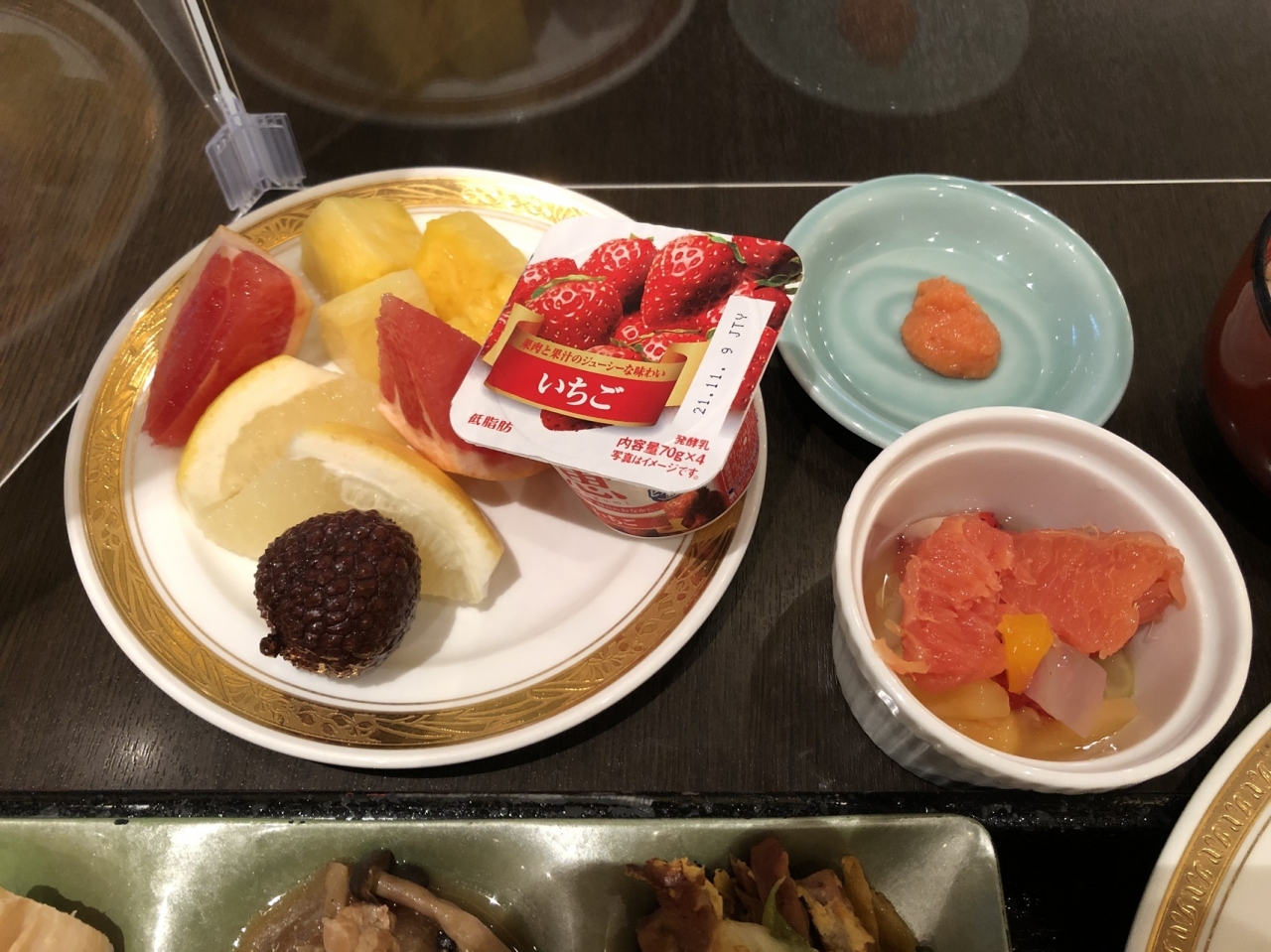 朝食は無料サービスでバイキング形式。同じくれたけチェーンの蒲郡クラッシックホテルの総料理長が監修したもの。卵料理、ソーセージ、生野菜などに加えてカレー展ハヤシライス(日替わり)があるのは嬉しい。また、他のくれたけホテルと同じくハッピーアワーがあり、アルコール(生ビールあり)やソフトドリンクが楽しめます。