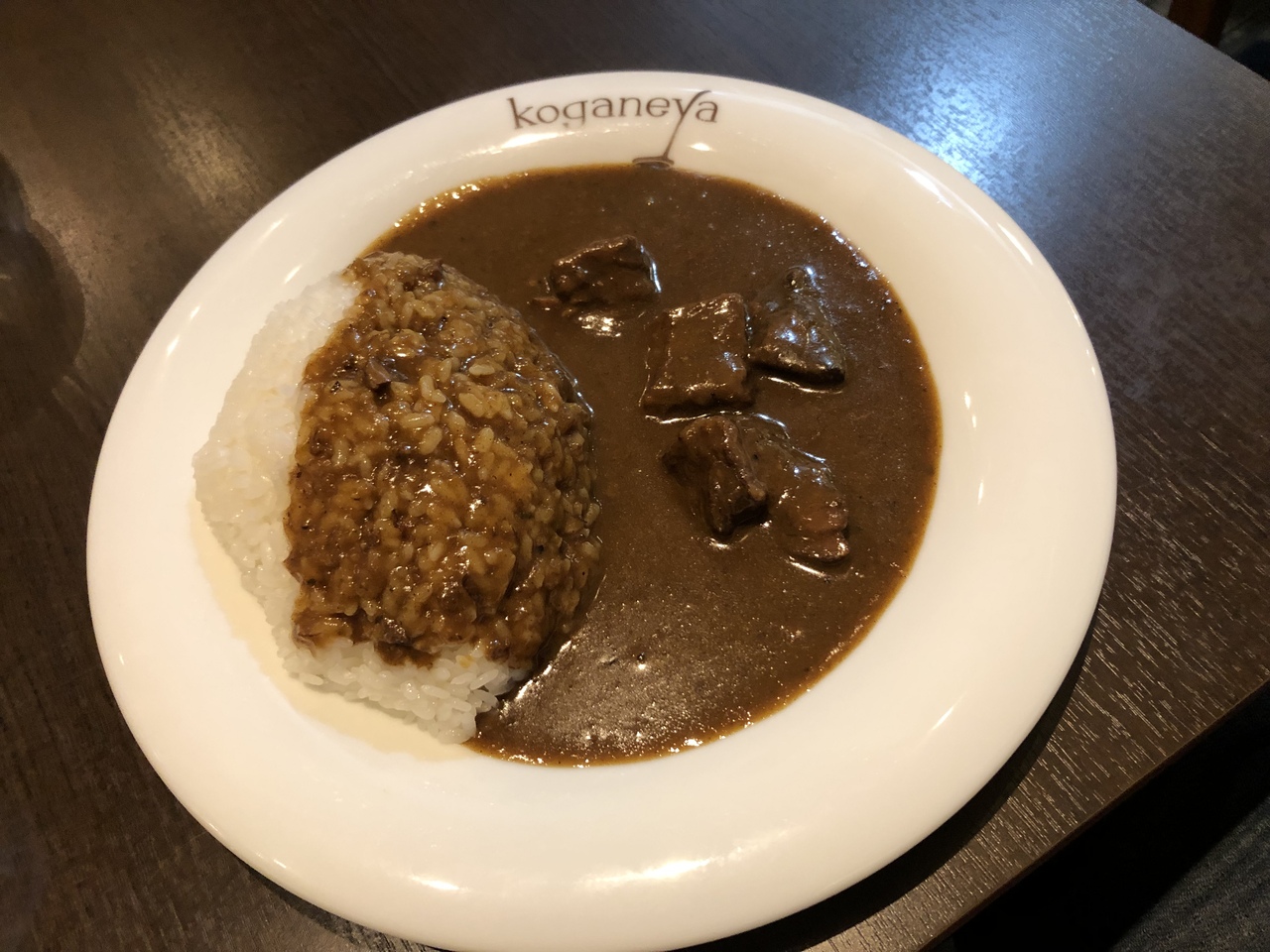 GPを取ったカツカレーにも惹かれましたが、今回は、このお店自慢の一品で数量限定の「koganeya Beef」というカレーを注文。