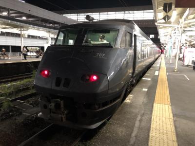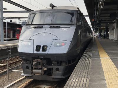 車両は全列車が787系に統一されており、下り5、9、15、19号、上り4、6、14、18号は6両編成でDXグリーン車、グリーン個室.指定席のボックスシートあり、そのほかは4両編成で1号車の一部がグリーン車で、ワンマン運転となっています。