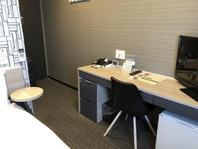 宿泊した部屋は、広さ14㎡のデラックスシングルルームですが、ベッドの大きさも160cmと余裕がありました。2018年に開業したホテルなので、設備は比較的新しいものが揃っており、コンセントも多数ありました。