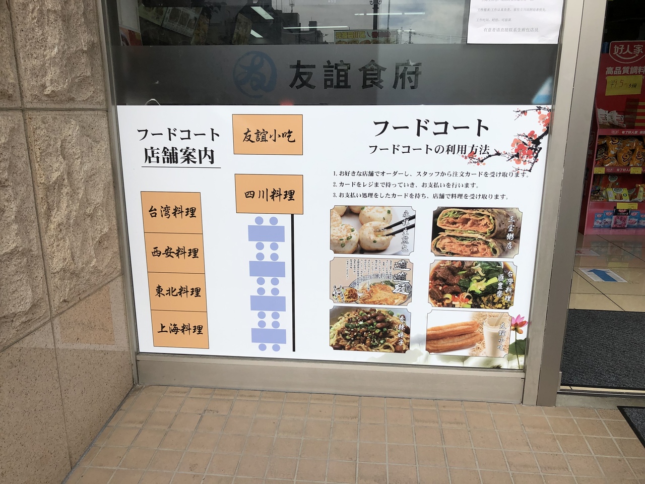 JR立川駅から徒歩5分、モノレール立川南駅から徒歩3分くらいのところにあるフードコート兼中華食材店。