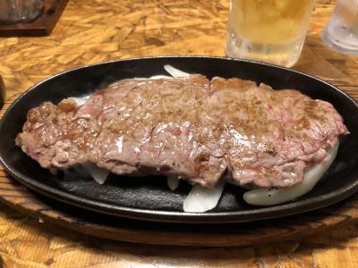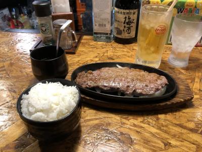 国際通り、ホテルJALシティ那覇の向かいにあるステーキ店。店内は1階にはカウンター席とテーブル席があり、2階には大きなテーブル席もあります。1ポンドステーキで有名なお店で、夜は、ビールや泡盛の種類も多く、つまみもあるのですが、コロナ禍の訪問であったため、夜もランチのみ。そこで、サーロインステーキ200gのランチセットをオーダー。肉好きにはたまらない赤身のステーキは、柔らかくて美味。沖縄らしいステーキが食べられましたが、やはりお酒を飲みながら食べたいですね。