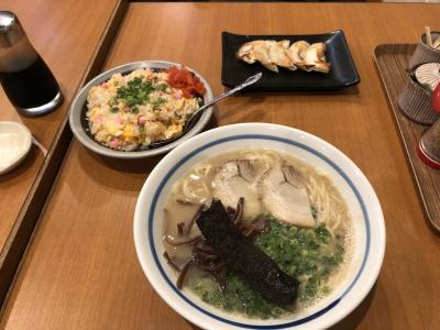 今回はラーメン+餃子5個+焼きめし(小)+焼きめし(小)の「お得なセット」を注文。まずラーメンは、丸福ラーメンの味を受け継いでおり、あっさりとした豚骨のみでの仕込まれたスープは深みがある。脂をあまり感じず、塩加減はやや強め。喉越しのよい中太麺との相性はよい。ラーメンとともに味わいたいのが「焼きめし」。ラーメンと焼き飯のセットは久留米では定番メニューで、刻まれた具材が豊富で少し甘みがあります。餃子は博多で食べる小さなタイプ。夜は居酒屋メニューもあり、また、豚骨スープのちゃんぽんも有名なようなので次回はそれで。- 旅行時期