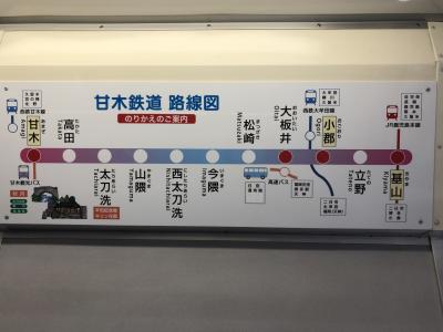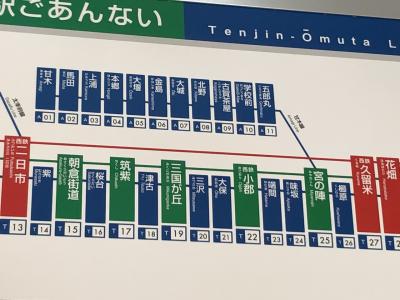 福岡県久留米市の宮の陣~朝倉市の甘木までの12駅、17.9kmを結ぶ西鉄の支線。現在は西鉄の支線ですが、歴史は大きく異なり、天神大牟田線よりも開通は早い。1915年(大正4年)に三井電気軌道の福島線の延長路線として宮の陣~北野間が開通。1921年(大正10年)に甘木まで開通した。1924年(大正13年)年に三井電気軌道は西鉄天神大牟田線の前身である九州鉄道と合併し三井線となり、さらに1923年(昭和23年)に甘木線として分割され、電圧が1500Vに昇圧しました。