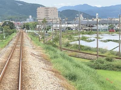 車窓は、田園風景と思えば、高速道路と並走する高架線、さらには「マルちゃん赤いきつねと緑のたぬき」でお馴染みの東洋水産の工場があったり、キリンビールの福岡工場(かなり気にしないとわからないが、昔は専用線があった)があったりと楽しい。また、終点の甘木駅の手前では、西鉄甘木線が大きなカーブを描きながら近づいたりもします。終点甘木駅と西鉄の甘木駅は100mくらい離れており、徒歩連絡が可能。また、秋月城跡へはバスで20分くらいです。- 旅行時期