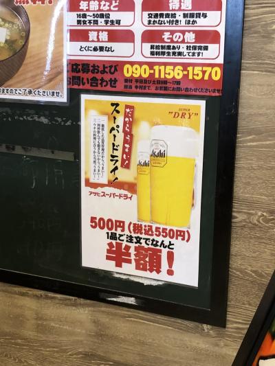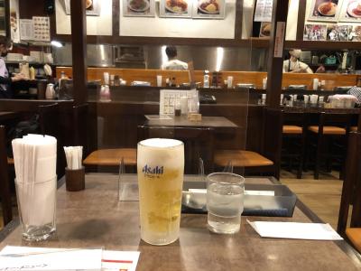 お客さんは、ここで夕飯を済ませるサラリーマンと軽く飲んでいこうというお客さんが半々くらい。生ビール(中)やグラスワイン、ハイボール、酎ハイが330円というのはかなり嬉しい。お店の奥に貼られた「元総料理長は元気にやっトルコ」て書いてあるのがサラリーマンの街らしいかも。- 旅行時期