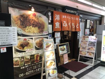 せんびる(船場センタービル)2号館地下2階、大阪メトロ堺筋本町駅改札口からすぐのところにあるお店。カウンター席とテーブル席があり、お店の奥には大型テレビで番組を放映中。お店はなんとなく庶民的ですが、実は元スイスホテルの料理長とその息子さんが作る洋食のお店。