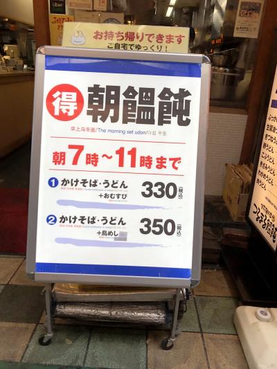 今回は、朝セット(鶏めし)に、きつねをトッピング。きつねはジュワッと甘いもので、お汁との相性は抜群。鶏めしは少し冷めてはいますが、味は程よい濃さで鶏肉もしっかりしている。最近では珍しいおしぼりサービスも嬉しい。- 旅行時期