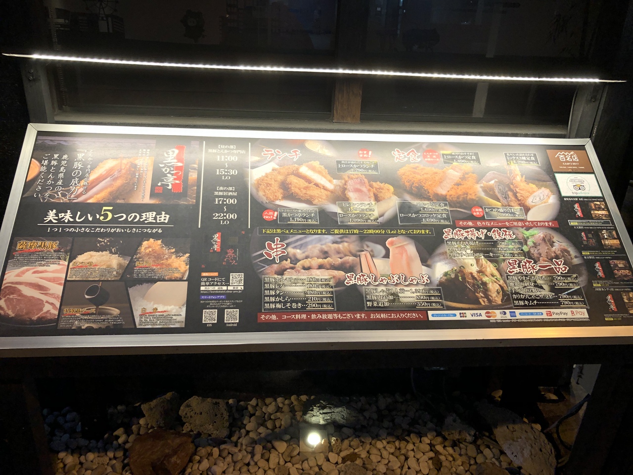 天文館から少し先、朝日通り電停近くにある薩摩黒豚を使った居酒屋。鹿児島産の黒豚を使ったお店で、鹿児島中央駅の近くに本店があり、東京駅構内の東京駅一番街やJR博多シティにも出店しています。