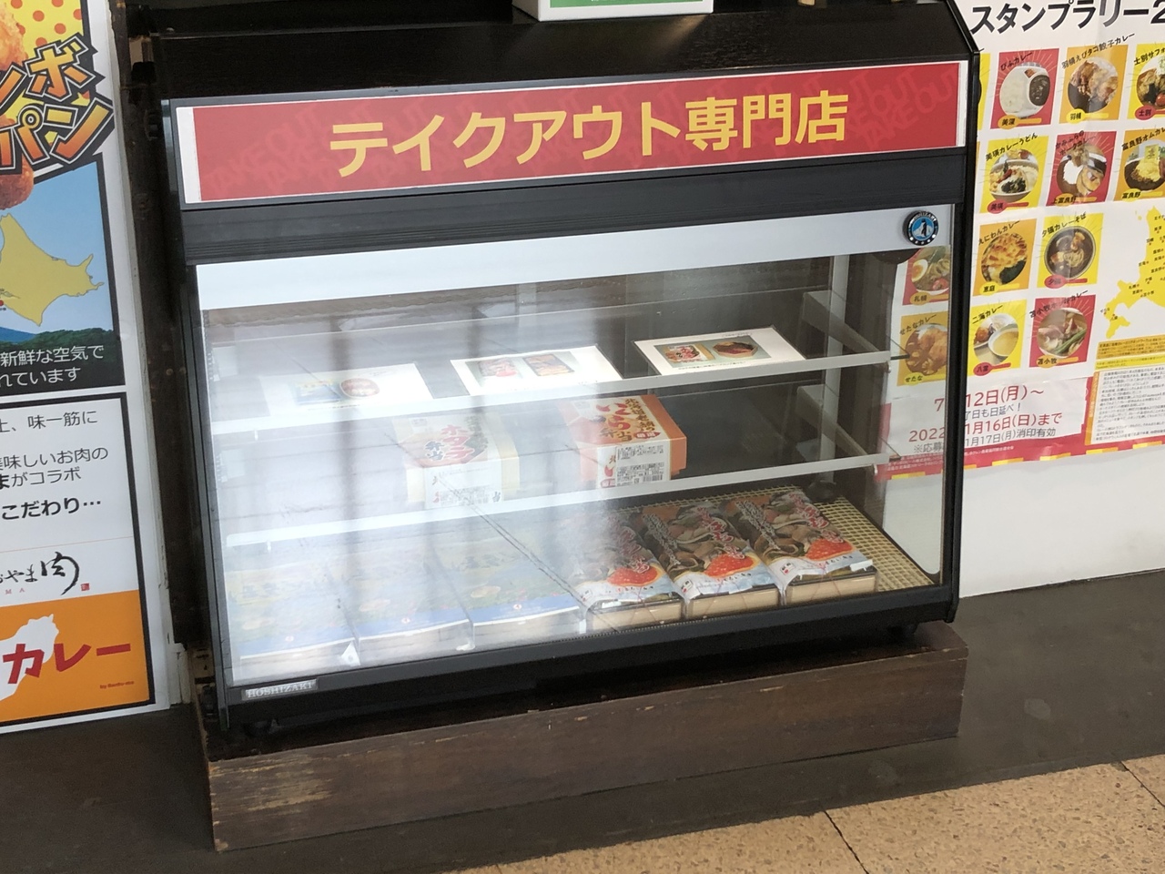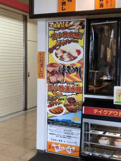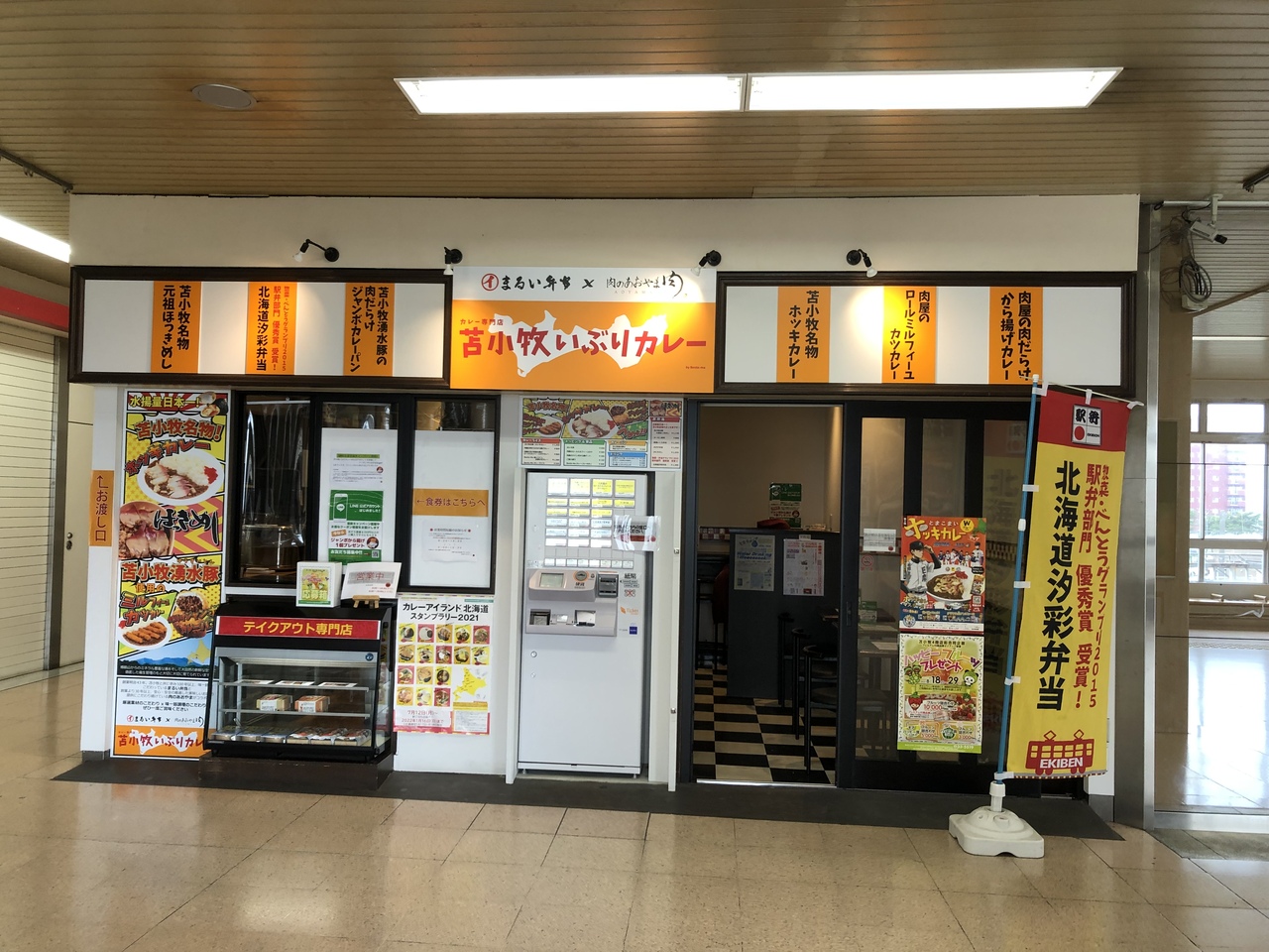 JR苫小牧駅内、改札口を出たセブンイレブンの隣にあるお店。苫小牧駅の駅弁店で、元祖ほっきめしで有名なまるい弁当の売店で販売しておりテイクアウトのみですが、お隣のフリースペースで食べることができます。