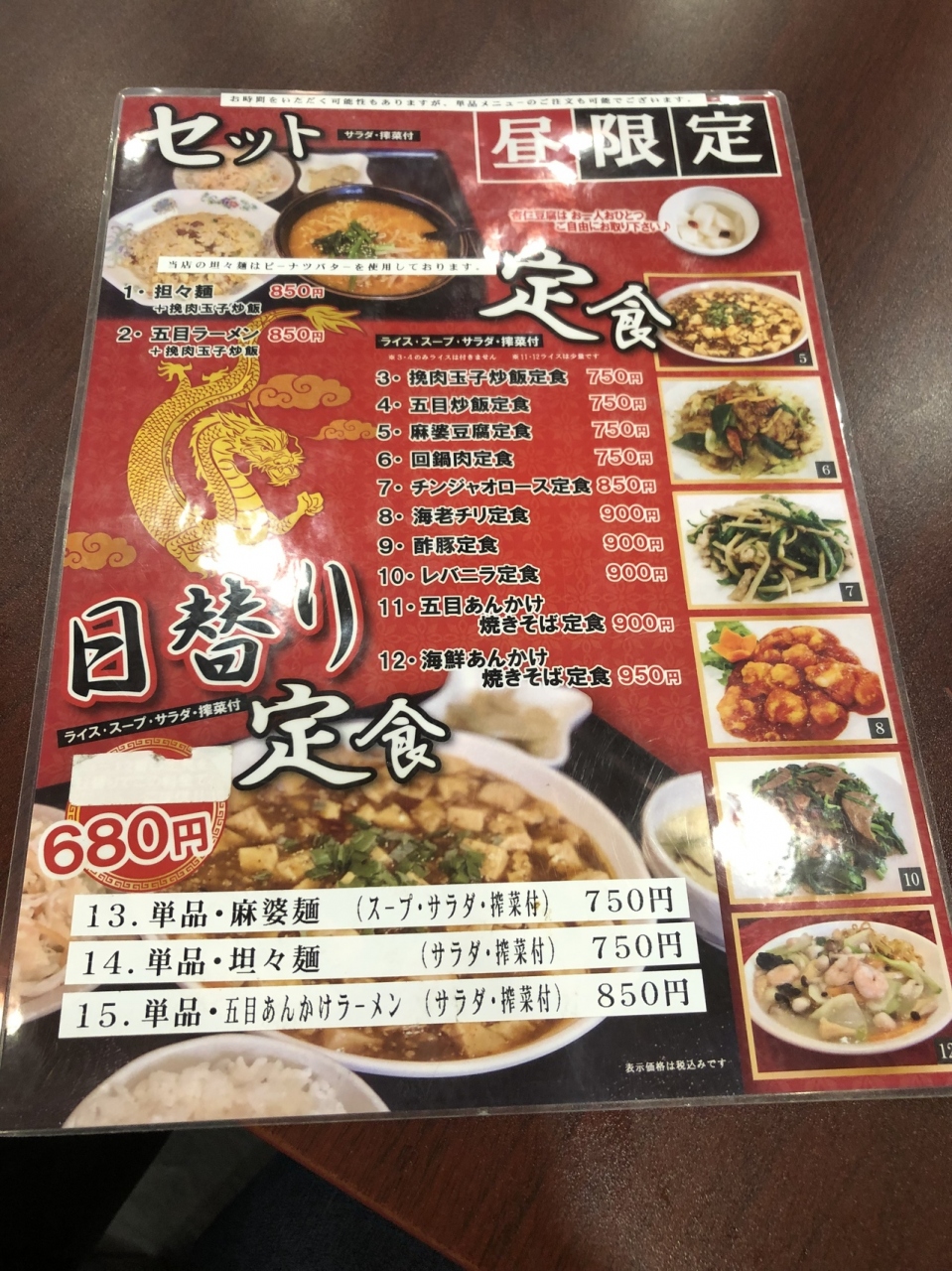 ランチは定食か750~950円で設定されており、さらに日替り定食は680円とリーズナブル。サラダ、搾菜、杏仁豆腐、スープがついてコスパがよい。今回は日替りの麻婆豆腐定食をオーダー。オーダー後5分くらいで土鍋で提供された麻婆豆腐は、山椒の効いた本格的なもの。細かく切った鷹の爪やラー油でさらに辛くなっていて、食べていると汗が吹き出しますが、ベースとなるスープは旨味もあるので、きつい辛さではありませんでした。スープにもトロミがついていて、味もしっかりしていました。ジャスミン茶が飲み放題なのは嬉しい。- 旅行時期