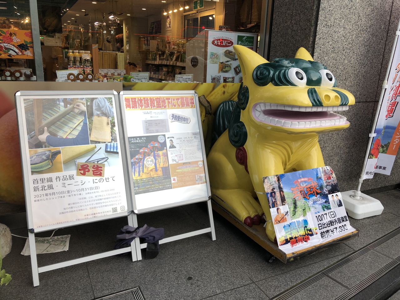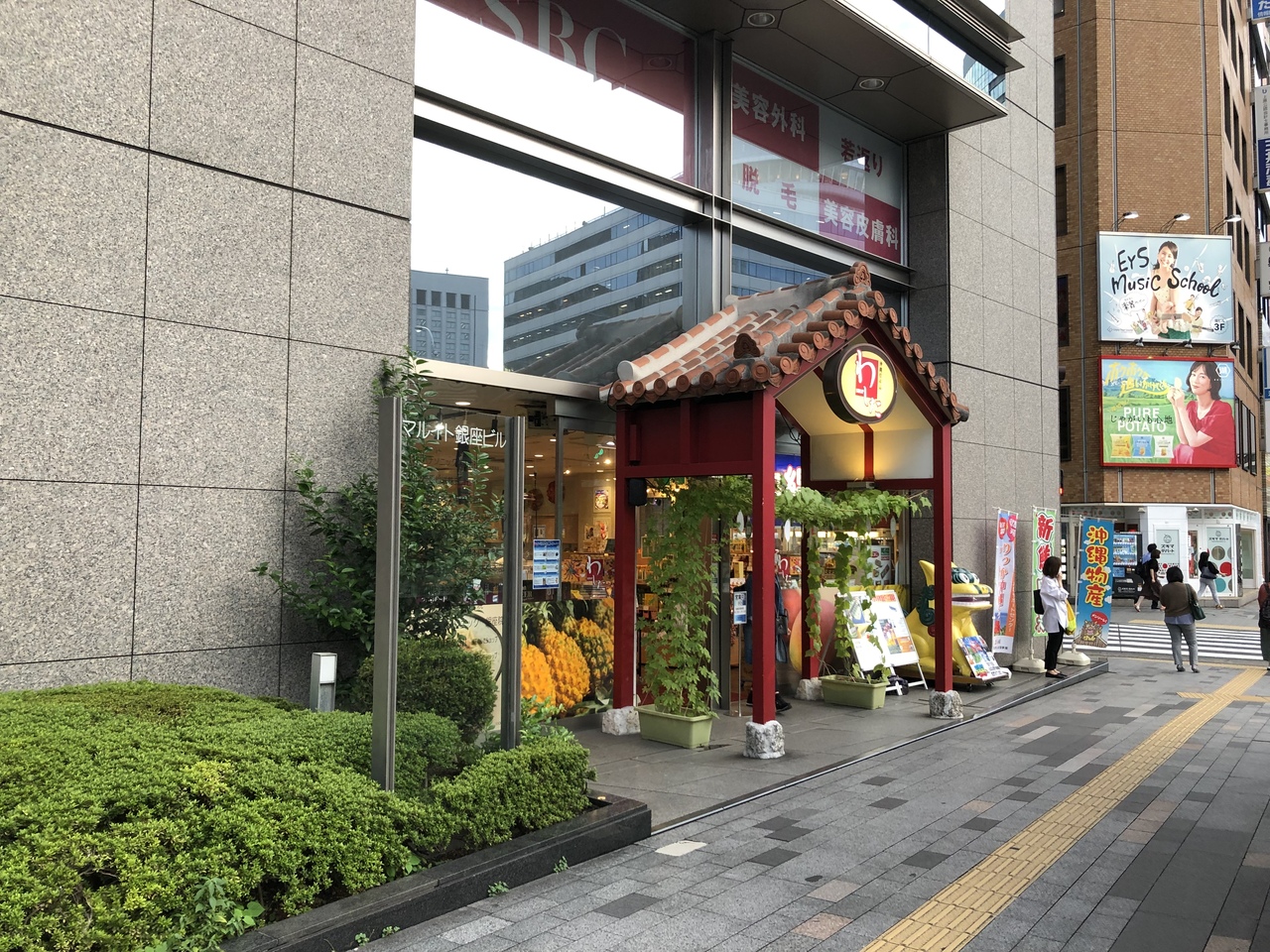 東京メトロ有楽町線銀座一丁目駅3番出口の階段を上がったところにあるお店。守礼門をイメージしたような赤い門が目印。店内に入ると当然、沖縄の商品が並んでいますが、ここだけは東京ではなく沖縄の時間が流れている雰囲気。品揃えも那覇のスーパー並みで、その数は4000種を超えるとのこと。やや価格は高いもののマンゴーやパイナップル、海ブドウ、ナーベラ、島らっきょう、沖縄そばの茹で麺をはじめさまざまな沖縄から直送された季節の食材が買えるのも魅力の一つ。奥には沖縄で言うとパーラー(飲食コーナー)があり、ブルーシールアイスクリームも味わえる。地下1階には沖縄の伝統工芸品や三線(さんしん)、スキンケア、かりゆしウェア、さらには泡盛コーナーがあり、さらに沖縄の雰囲気を味わうことができます。沖縄県物産公社の直営のお店であり、商品の品質も安心です。