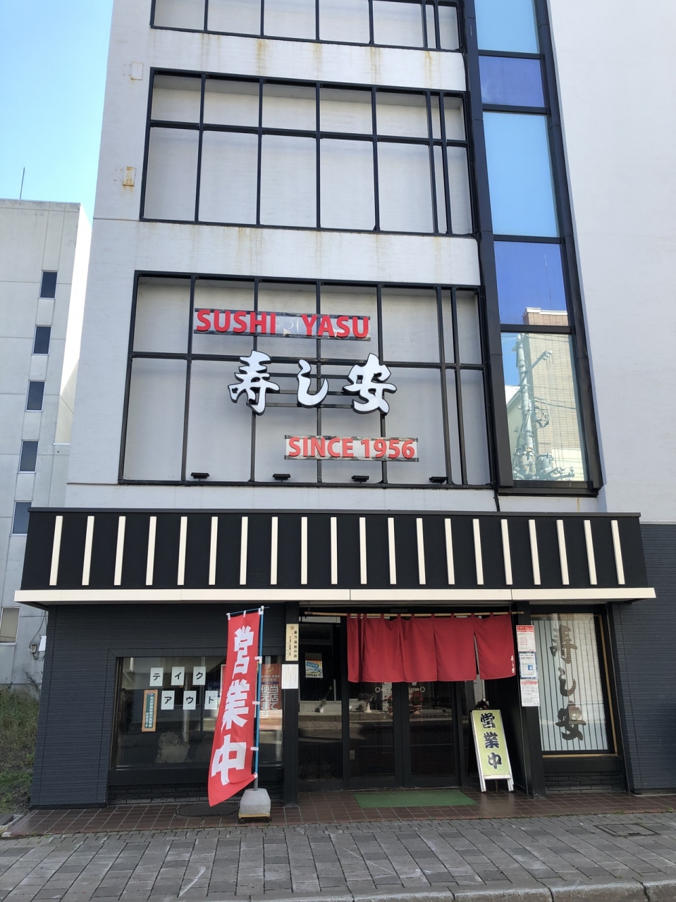 網走バスターミナルから徒歩3分くらい。南5条西2丁目にある寿司・和食のお店で、昭和31年(1956年)創業の老舗。網走の飲食店としては珍しい5階建てのビルに黒壁の外観の店舗と少し敷居が高いように見えますが、実際は庶民派のお店。カウンター席、テーブル席、座敷責任とあり、一人からグループまで対応可。旅行会社のツアーも受け入れているようです。