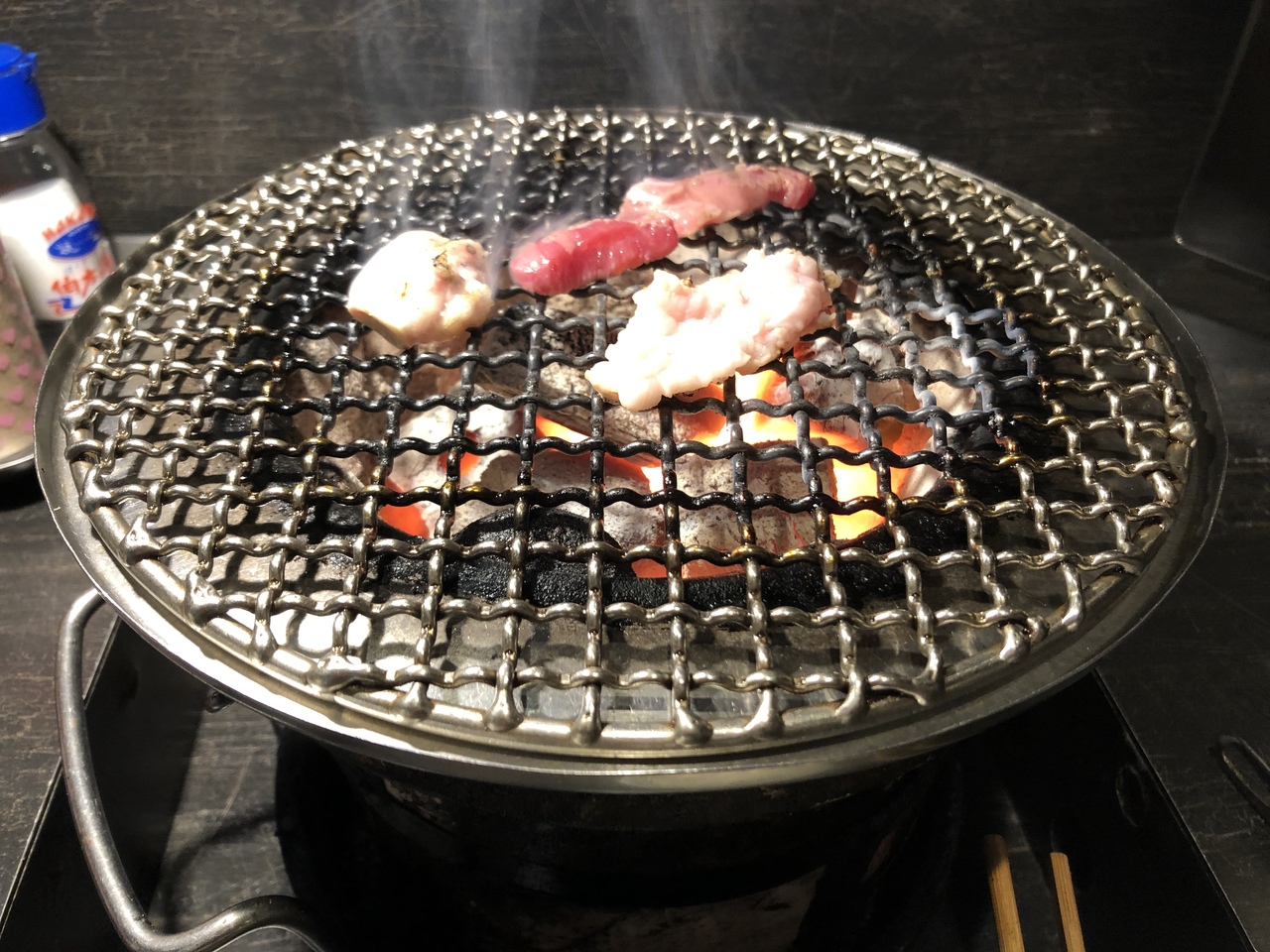 北海道の都市(5万人以上)で焼肉店の対人口比が最も高い北見にある人気の焼肉店。北見の焼肉店ランキングでも常にトップとなるお店で、JR北見駅から徒歩5分くらい、北4条通り沿いの場所にあります。お肉を七輪で焼くスタイルのお店ですが、全席にロースターが設置されており、煙を気にせず食べることができます。また、カウンター責任もあるので一人でも安心。人気店なので予約必須、開店直後の17時にお店に行き、席が空いたら電話してもらうことにして19時過ぎにお店に入れました。