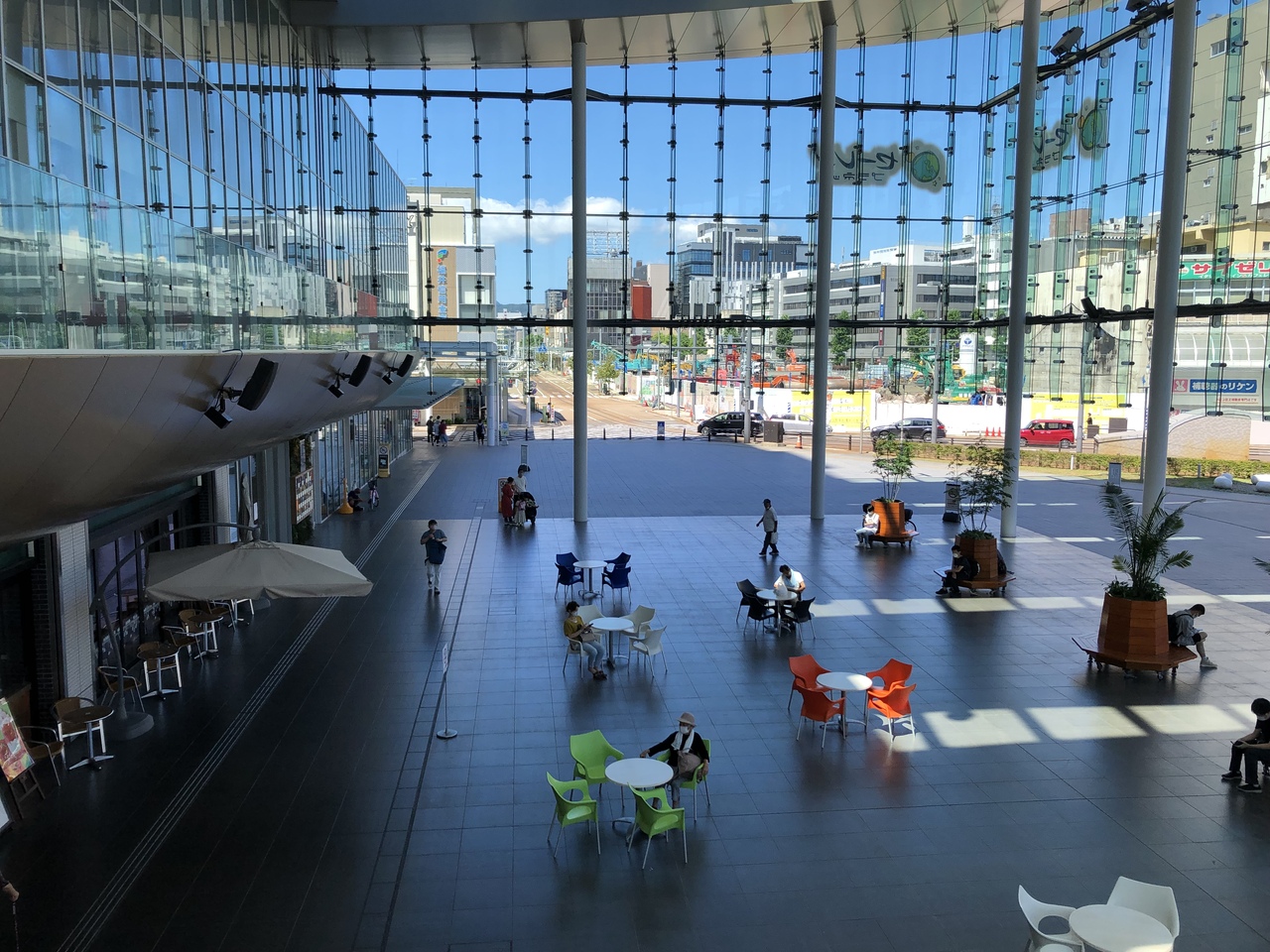 1階と2階にはウエルカムセンターや福福館(福井市観光物産館)があり、観光にも便利。特に福福館は、福井県内の伝統工芸品や物産品、郷土料理店などが集まっているので、お土産探しにちょうど良い。