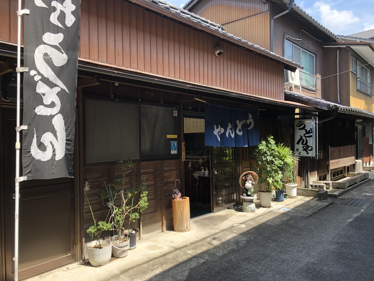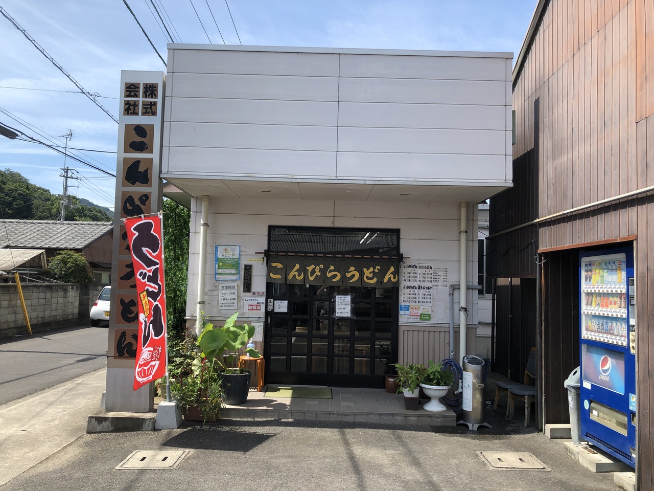 お店は江戸時代の1850年に建てられたという、参道で最も古いもの。歴史と風格のある建物ですが、店内はリニューアルされており(当然ですが)、食べ終わった器を戻す用のベルトコンベアがあったりします。席数も多いので、並ぶことはまずないと思う。こうした古い建物のせいか、数あるこんぴらさんのうどん屋さんの中では、かなり観光客向けになっている気もしました。